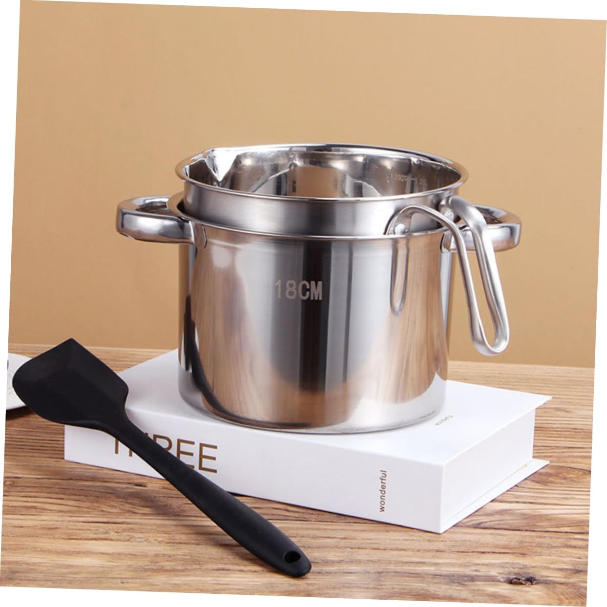 Package List 1 x outer pot 1 x interior pot Characteristics -Material:Stainless steel Melting Pot -Color:Silver chocolate melt bowl -Size:18.00X18.00X11.50cm/7.07X7.07X4.52in(outer pot) chocolate warmer -Size:16.00X9.70X9.00cm/6.29X3.81X3.54in(interior pot) Heating Pot - Melting bowl comes with practical handle, with the ergonomic design, easy to use restaurant pots. - Integrated molding, uniform and fast heating. Good use experience. Perfect for melting butter, cheese, candy, chocolate, candle making etc. Also used a normal container. milk cooker - It has a compact and lightweight design, but very practical in use. A perfect item for your baking and cooking time pot with pour spout. - You can use it to make delicious desserts, cook lighter sauces or delicate snacks by indirectly heating double boiler stainless steel. - Excellent details, is perfect for heating milk, water and oil, melting chocolate, butter, candy, cheese, caramel, wax mini butter warmer milk pan.Goods Informationdouble boiler pots pan A nice helper for you.Melting Pot The melting pot is a good kitchen utensil for home or restaurant.Kitchen Supplies It can quickly and easily melt chocolate, butter, wax and other foods.metal pot The melting pot is made of stainless steel, very sturdy and compact, with workmanship