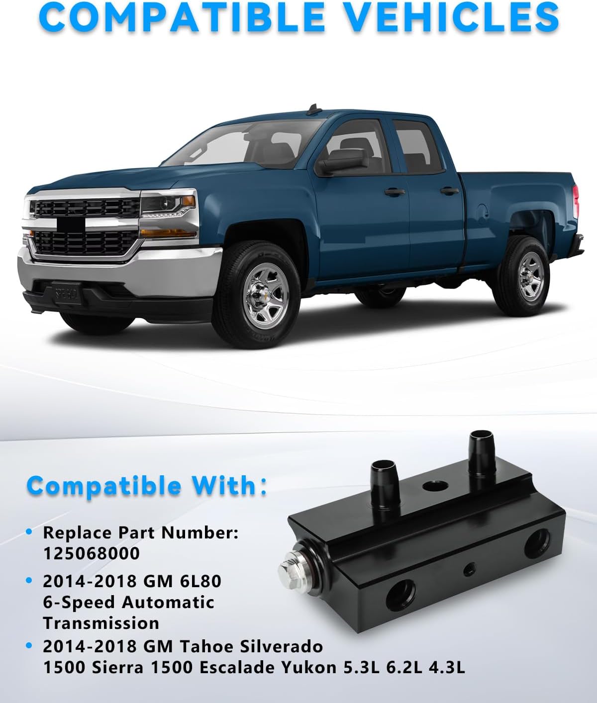 VANKUB 125068000 Automatic Transmission Fluid Thermal Bypass Valve for 2014-2018 Chevro-let Silverado 1500, GMC Sierra 1500, Yukon, Tahoe, Escalade with 6L80 Transmission, 4.3L, 5.3L, 6.2L Engines
