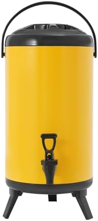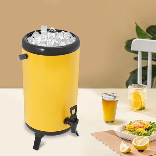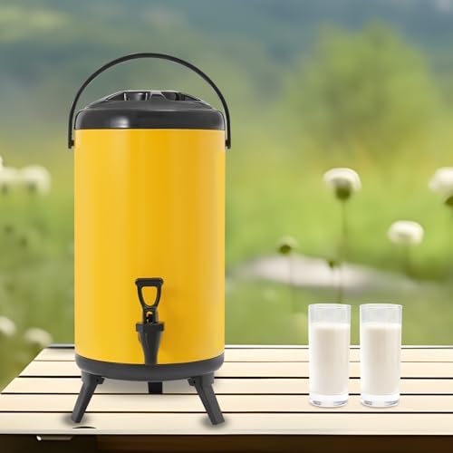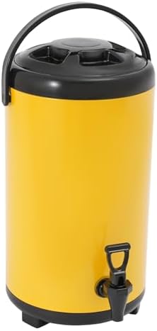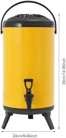 Introducing our versatile Stainless Steel Beverage Dispenser, perfect for a variety of settings including parties, outdoor picnics, cafes, buffets, hotels, and restaurants. Designed to enhance your beverage service, this modern dispenser is ideal for serving hot chocolate, milk tea, iced tea, coffee, and juices, making it a must-have for any gathering. Crafted from durable 201 stainless steel, our dispenser not only ensures longevity but also provides an elegant look with its sleek design available in vibrant yellow, blue, and white. Its round shape and tabletop, freestanding mount type make it easy to integrate into any decor. With a generous capacity of 12L (3.17 gallons) and an actual usable capacity of about 8.8L (2.32 gallons), this beverage dispenser allows you to serve beverages efficiently without frequent refills. The maximum temperature resistance of 110°C (230°F) ensures that your hot drinks stay warm for approximately 4 to 8 hours, making it ideal for events that last throughout the day. Measuring 24cm in diameter and 38cm in height, this dispenser is compact yet spacious enough for all your beverage needs. Its lightweight design (gross weight of 2.73kg/6.02lbs) allows for easy transport and setup. Please note that this product does not include beverages and lacks a heating function. It is essential to handle it with care, especially with hot or cold liquids. Be aware of slight color variations due to lighting and allow for minor measurement discrepancies. Elevate your beverage service with our Stainless Steel Beverage Dispenser and impress your guests with its functionality and style.