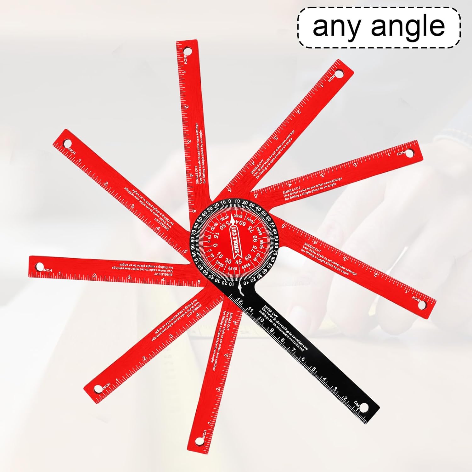 Specification: Color: red, black Material: aluminum alloy Product Size: 18.5x6.3x1cm/7.3x2.5x0.4in Package details: 1 x miter saw protractor Note: Due to manual measurement, the size and weight may have a certain error. Due to the difference between different monitors, there may be a slight color difference existed.
