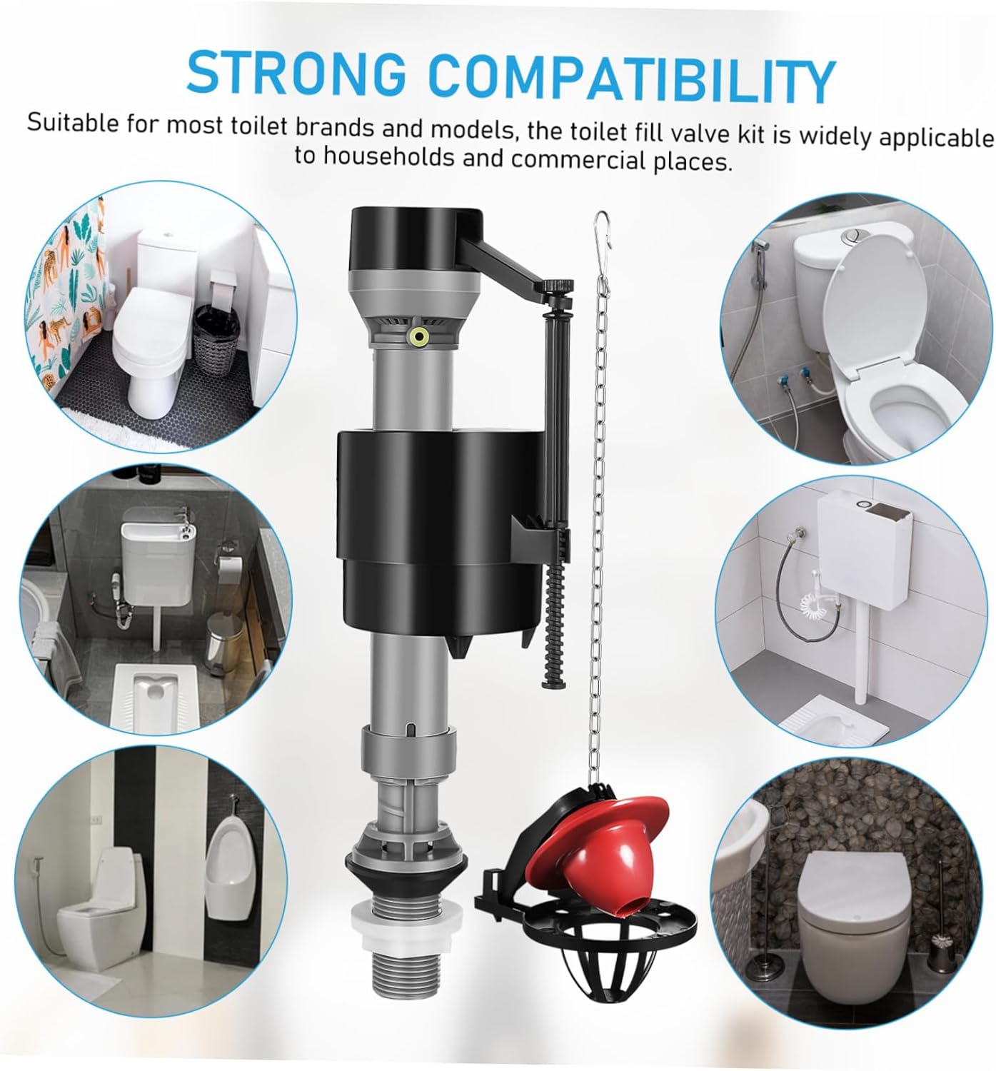 Package Include 2 x fill valves 2 x flappers Characteristics -Water level range: 8''-13'' inside toilet replacement kit - Size: 27.00X4.00X4.00cm/10.61X1.57X1.57in toilet repair kit - Wide compatibility: This kit is a universal replacement for a wide range of toilet types, making it suitable for various residential and commercial settings toilet water tank parts. - Water saving: Thanks to its adjustable buckle, this float replacement kit for toilet ensures easy control of the inlet according to your actual needs to water toilet tank fill valve. - Effortless installation: This toilet valve kit is fastened with screw threads, making it simple for anyone to install toilet tank fill valve replacement. -Shank size: /16'' toilet float replacement -Working pressure: 0.02-1.6MPa toilet repair parts -Color:Assorted Color toilet internal replacement kit - Fine adjustment: This toilet tank replacement kit features a needle valve that enables precise adjustments, allowing it to quickly stop the water flow toilet tank replacement kit. -Material:Plastic toilet tank float valveGoods Descriptiontoilet valve replacement And its adjustable height allows you to choose the level to your liking.toilet tank water inlet accessories Upgrade your toilet with this fill valve kit and enjoy a bathroom experience! With its precision workmanship and easy installation process, our fill valve will ensure that your toilet tank fills quickly and quietly every time
