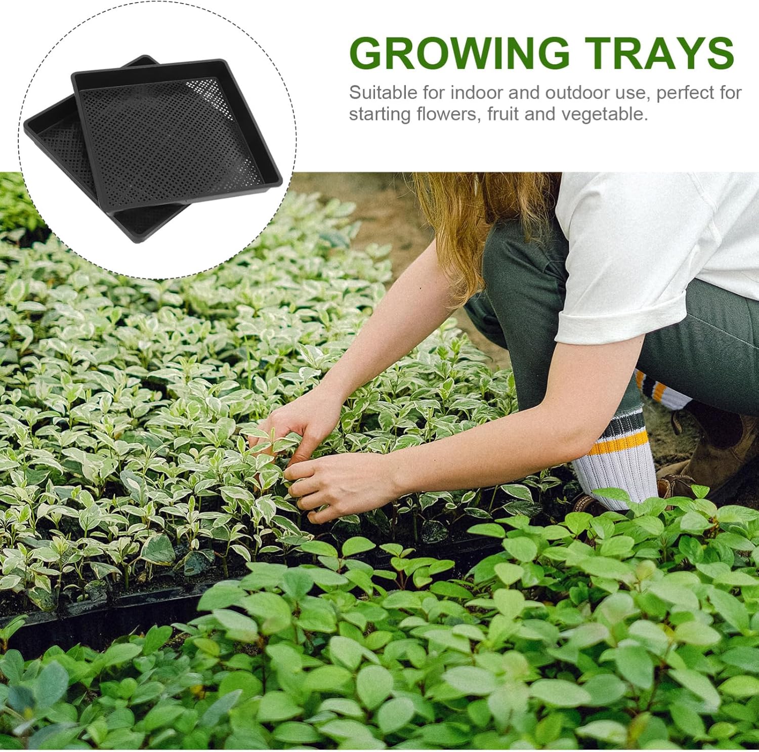 Package Include 5 x Starter Trays Features -Color:Black potting trays for plants -Size:42.50X42.50X5.50cm/16.70X16.70X2.16in starting tray -Material:Plastic germination tray - Provide the plant with better nourishing space, and they are a great tool for those who love gardening tray. - The germination tray is not easy to hurt the root system when transplanting, saving space greenhouse accessory. - The germination tray is strong enough, not easily deformed or broken, and growing trays. - Fine grinding, smooth surface, no burr, comfortable feel, germination tray is safe to use plant nursery starter. - This tray is widely used in greenhouse, gardening, agriculture. They are for starting, plant seedling tray.Goods Informationstarting tray This tray can as a greenhouse for germination, allow your plants grow healthy and quickly.plants tray Easily meet your different needs.plant tray This plant starting and growing tray can be applied for various kinds of plants, vegetables, fruits, flowers, etc