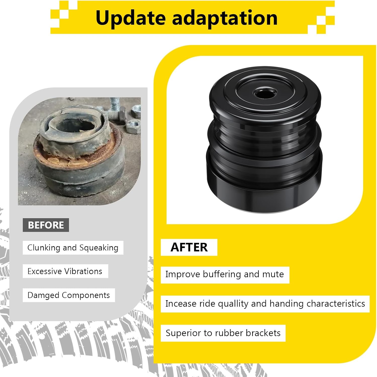 Upgrade your car performance with our high-quality silicone body mount bushing kit, designed specifically for 2008-2016 Ford F-250 and F-350 Crew Cab. This complete silicone Body Mount Kit delivers exceptional durability, vibration reduction, improve bumpy ride, provide you with a smooth riding experience.The cab mount bushing kit is made of high grad Silicone, which is high strength and no deformation, Impact resistance, and for long-life use. Silicone bushings will not crack or breakdown like OEM foam or rubber bushings, more noise and vibration reduction than OEM and Polyurethane mounts.