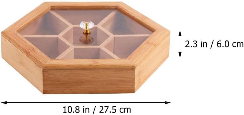Package Include 1 x Storage box with lid Features - Color: Wooden color Snack Container - Material: Wood Fruit Plate - Size: 27.50X27.50X6.00cm/10.81X10.81X2.36inch food serving plate. - elegant and natural elements to your dinner table Decorative Candy Plate. - home, caterers, office parties, banquet facilities and any other indoor/outdoor events Snack Box. - Serving plate consists of seven divided sections, excellent for serving snacks and appetizers Dried Fruit Plate. - It is a perfect choice for your family and the environment nut serving container. - Adopted wood material with clear wood grain, more unique and practical jewelry tray.Goods Informationjewelry organizer tray Made with sturdy material, Natural and elegant colors, rich in Japanese flavor, showing the calm and elegance of life.container with lid Wood material is and storage, not easy to break and deform.organizer with lid It's entertaining family and friends at get-togethers
