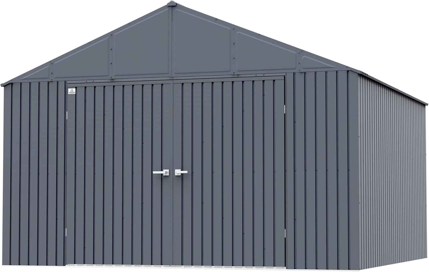 The Arrow Elite Outdoor Lockable Steel Storage Shed Building will add an attractive and functional storage space. This 12’ x 12’ steel storage building is engineered with a premium steel material to provide superior protection for your stored tools, gardening supplies, and lawn equipment. Constructed from Galvalume, an aluminum and zinc plated steel, the Arrow Elite Storage Shed is a long-lasting storage option for your property. This plated steel is highly anti-corrosive. This reliable storage building is designed with a tall gable roof for added headroom and a squared wall design for a sleek look. The metal shed features tall 72" vertical wall panels to help store taller items and provide adequate walk around space. With the 88.00" W x 69.77" H shed entrance, you can easily access the shed's interior and retrieve items effortlessly. The reinforced and sturdy wide door allows easy access to the interior of your storage shed, while also allowing storage against the front wall. Protect your items from theft with the lockable swing shed door, which features a brushed nickel key lock handle. In addition, gable vents provide increased air flow to the shed's interior. The Arrow Elite Shed comes ready to assemble with pre-cut and pre-drilled parts. Proudly manufactured in the USA with globally sourced material. The storage shed measures 144.7" D x 101.6" W x 146.9" H with 141 sq. feet of storage space.