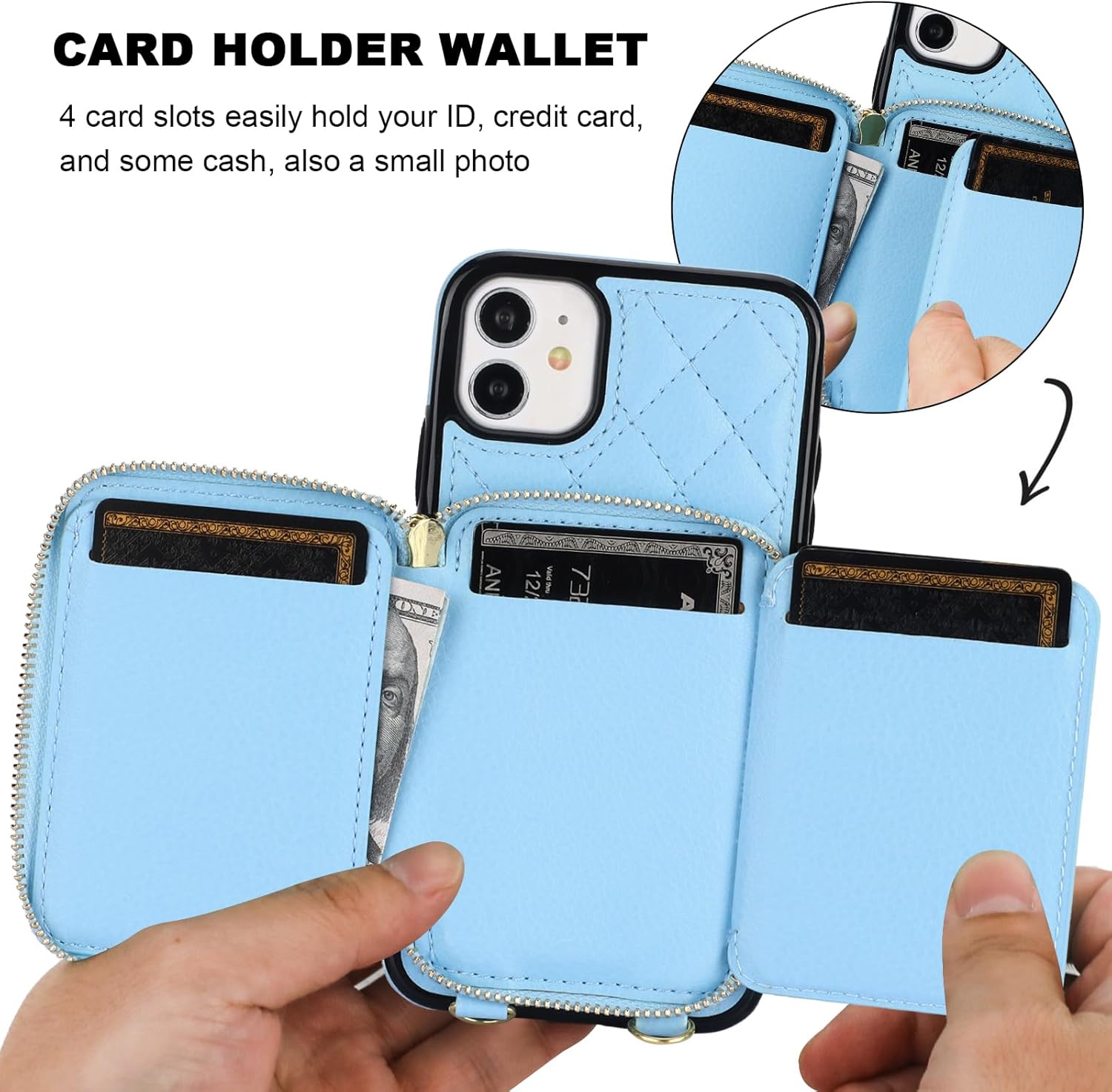 Bocasal iPhone 11 Zippered Crossbody Wallet Case with Card Holder 6.1 Inch (1)Compatible with: iPhone 11 6.1 Inch Display. (2)Color: Black/Brown/Rose Gold/Red/Mint Green. (3)Material: Premium Faux PU Leather. Features: 【RFID Shielding Material】: We adopt RFID shield material to protect your information data in the chips of your cards from stealing through radio signals. 【Removable Lanyard & Adjustable Shoulder Strap】: The attached anti-lost lanyard and detachable crossbody chain strap whose length can be adjusted is convenient when traveling, shopping, hiking, and so on. 【Large Capacity Crossbody Wallet Case】: The card slots can contain your cards as well as some cash while the zipper design can keep your belongings safe by ensuring the complete enclosure of the wallet part. 【Practical Kickstand Feature】: Designed with stand function, this leather case card holder allows you not to hold your phone in your hand when reading e-books, having video chats, seeing movies, and so on. And the diamond pattern is cute and exquisite in look.