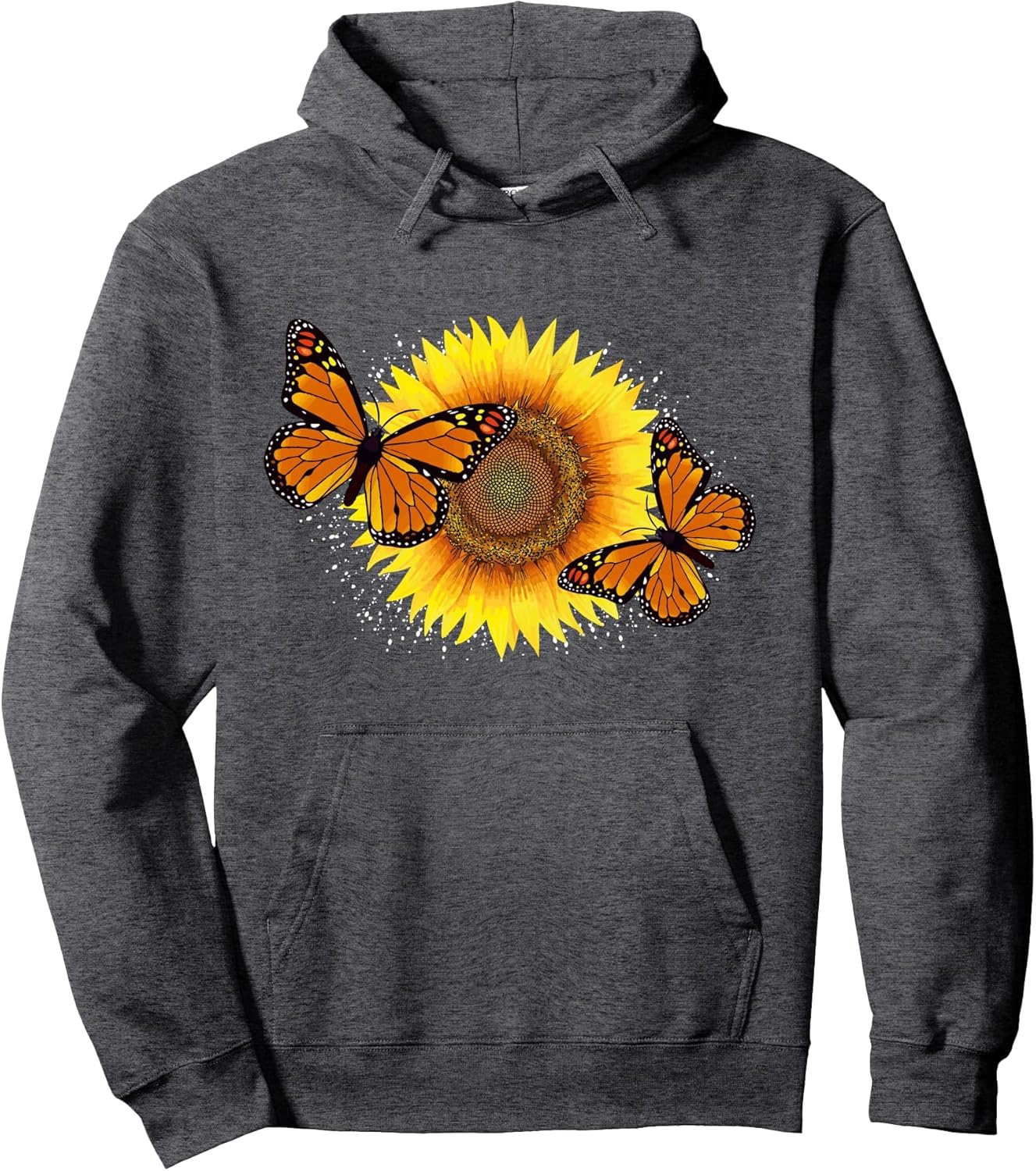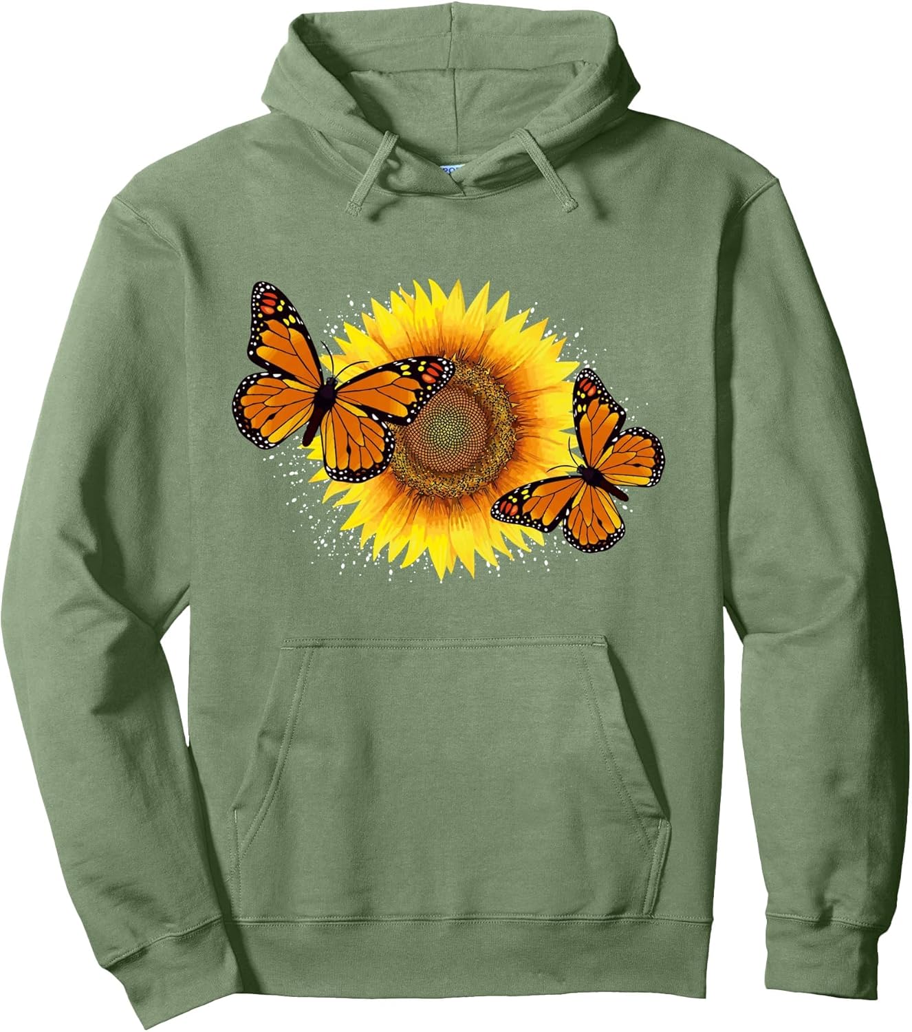 | Item Type Name | Butterflies Yellow Sunflower Beautiful Monarch Butterfly Pullover Hoodie, Adult Unisex, White, Large |