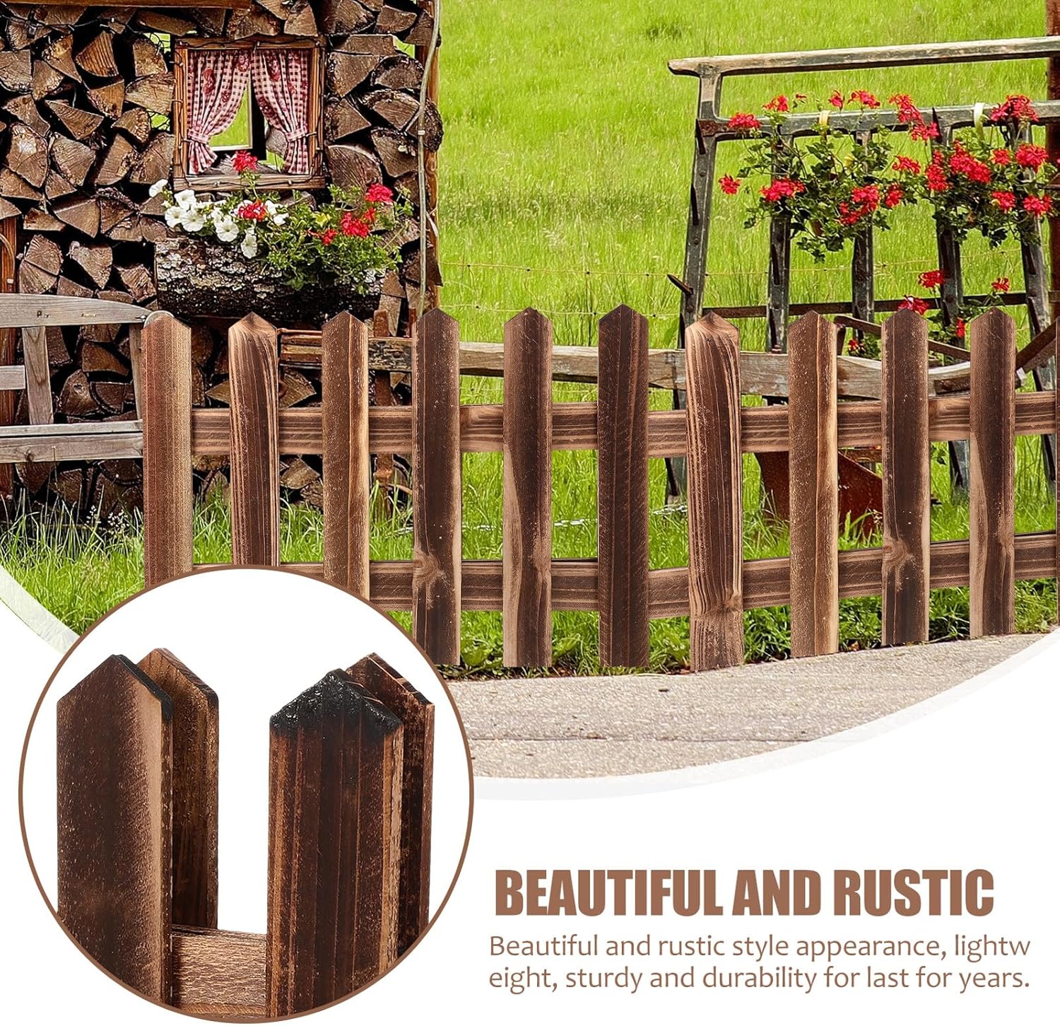 Package List 1 fence Characteristics -Product Info:Anticorrosion wooden fence -Size:40.00X30.00X30.00cm/15.72X11.79X11.79in garden border edging -Total length:160cm fences for yard -Material:Wood outdoor wood fence -Color:Light Brown landscape border - The garden fence is flexible so that you can DIY your own style garden with this fence fence panels outdoor. - Wooden garden fencing is treated with carbonizing, which can increase the deformation resistance edging for landscape. - This fence is extremely flexible without breaking. Use in straight lines or unique shapes and curves you want landscape edging. -High-grade material, flexibility and excellent durability for , practical for daily life landscape border edging. - This wood garden edging border is built to last without much care and maintenance garden edging.Goods Descriptionwood fence Easy to use and convenient to install anywhere as you like.garden landscape edging That’s because our wooden fence set can meet your need.outdoor wood fence Adopted of wood material, it is practical and durable.landscape border edging If you are looking for a sturdy and garden fence, then your research is over here