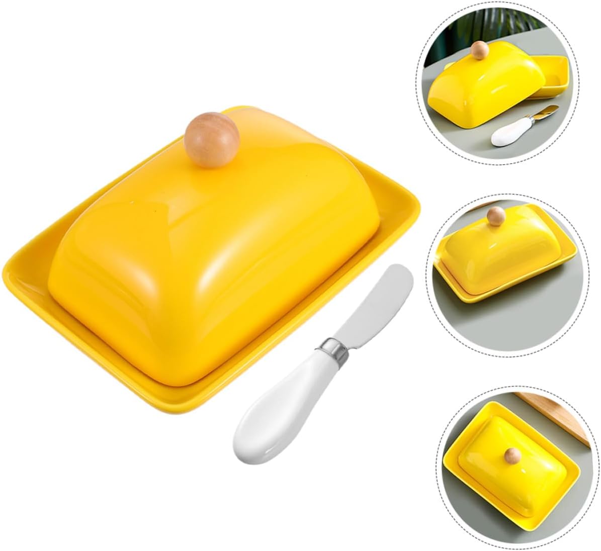 Package List 1 x butter dish 1 x cutter Features -Size:13.00X3.00X1.50cm/5.11X1.18X0.59in(cutter) butter holder for counter -Material:Stainless steel, wood, ceramic large covered butter container -Color:Multi airtight butter dish with lid -Product Info:Butter dish -Size:16.50X11.50X8.00cm/6.48X4.52X3.14in(dish) butter container - Suitable for restaurant, dessert shop, kitchen, use it yourself, or present it to your friends as a counter butter keeper. - This versatile dish can be used for a variety of condiments, including butter, cheese, and more, making it a practical and functional addition to your kitchen butter container for counter. - Elevate your kitchen decor with this eye-catching butter dish. Its vibrant, harmonizes beautifully with other kitchenware butter keeper. - The material is safe and light, which is wear resistance and practical for the lasting time use countertop butter keeper. - Multi-purpose, great for storing butter, cheese, desserts, etc. in the kitchen, keeping food fresh airtight butter holder.Goods Informationbutter dishes with lids The simple and elegant design of the dish will complement any table setting, and the included cutter makes it easy to spread butter or cut cheese.butter holder for counter This dish is and easy to clean, making it a practical addition to any kitchen.airtight butter dish with lid This ceramic butter dish with lid is perfect for serving butter, cheese, and other condiments at your party