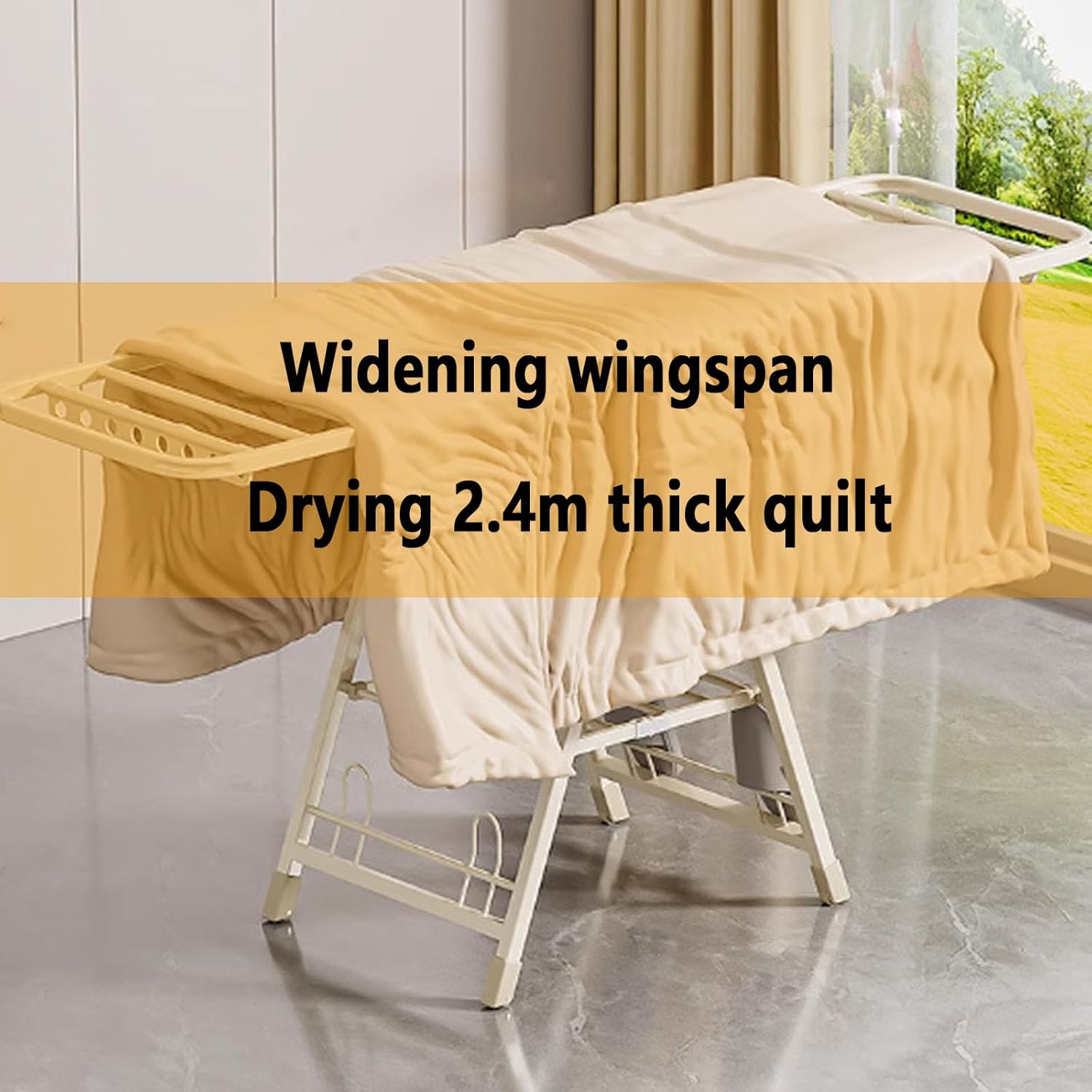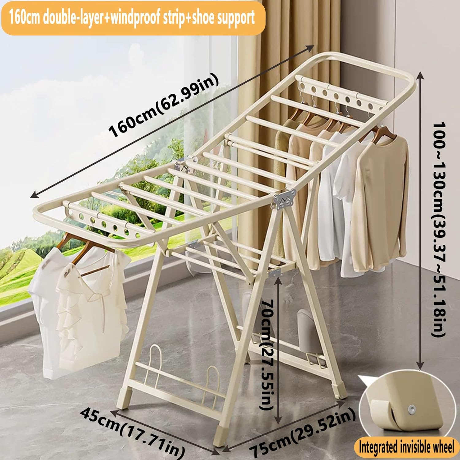 Exquisite living begins with drying. This foldable laundry drying rack features a simple and stylish wing-shaped design that seamlessly integrates into any corner of your home decor. The bold drying pole provides strong load-bearing capacity, making it suitable for various clothing items. Features:- Unfold wings to quickly expand and create a large area for air drying family clothes.- Constructed from bold material for enhanced load-bearing capacity, capable of withstanding strong winds and heavy garments.- Flexible folding design for convenient storage, saving space and allowing for easy movement.- No tools required for setup; easy to operate, ideal for all users.Specifications:- Product Name: Foldable Laundry Drying Rack- Material: Carbon steel- Size: 140/150/160/170/180 cm (55.11/59.05/62.99/66.92/70.86 in)The package includes:- 1 Foldable Laundry Drying Rack.