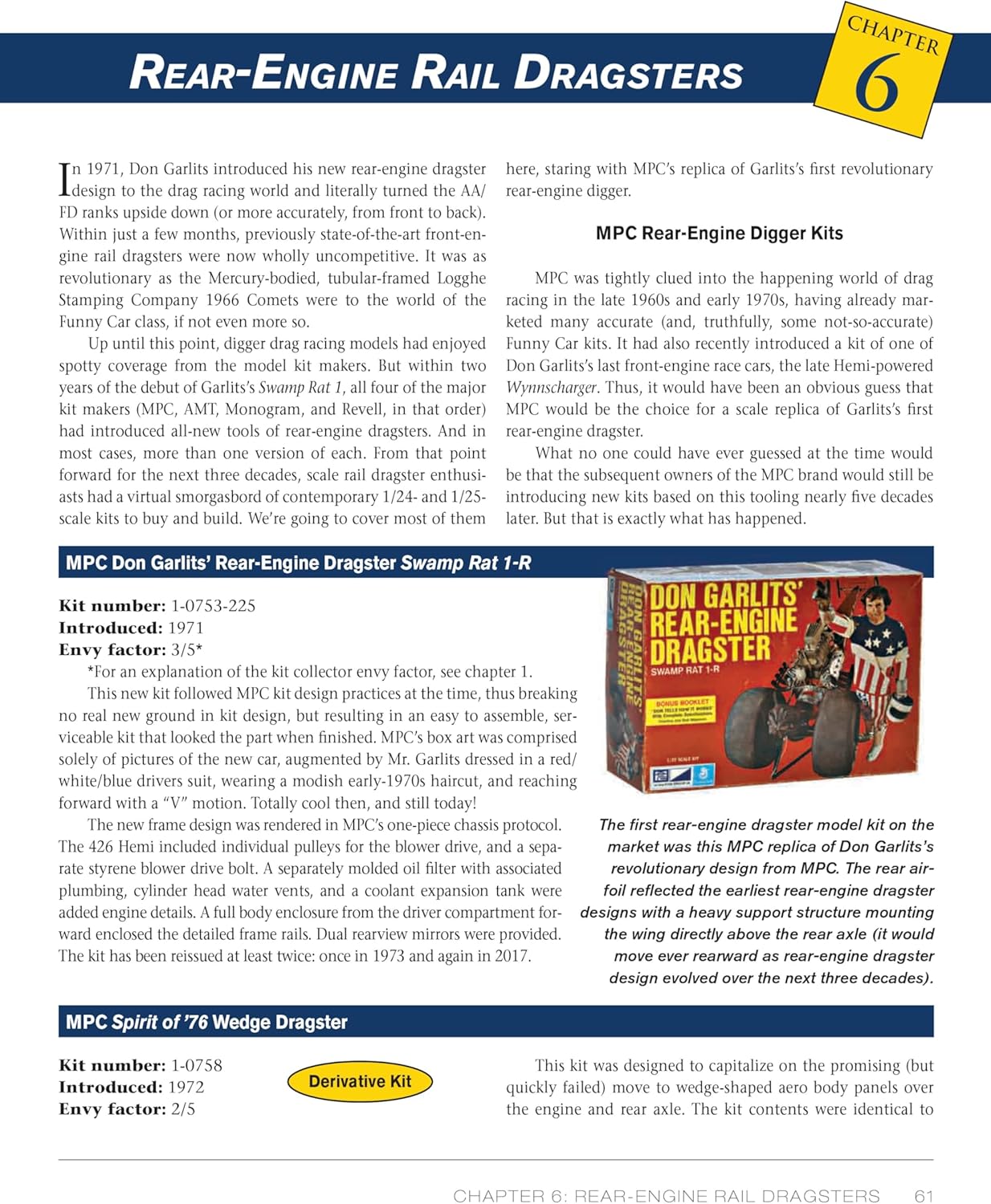 Model expert Tim Boyd, author of Collecting Muscle Car Model Kits, turned his attention to the fantastic drag racing model kits available from the late 1950s through today. Some racing model kits were actually 3 in 1 kits, where the builder assembled the drag-race version of the car in lieu of the street or custom version. Boyd starts by covering the options, collectability, variety, availability, and value of these wonderful kits and then concentrates on the highly detailed drag racing-only kits that became available starting in the mid-1960s through today. He also shows the differences between original kits, older reproduction kits, and new reproduction kits that many enthusiasts find at swap meets and through online sources today. Many of these great kits were from the 1960s, an era when building model kits was a widely popular, serious hobby, similar to video games today. Not only was it fun to build the kits but it was also a great way to learn about all the different race classes and categories because there wasn’t regular TV or online coverage during that era. The artwork on those kits was fantastic, and many collectors today seek original kits largely because of it. The classes of racing covered are Gassers, Rail Dragsters, Stocks and Super Stocks, Funny Cars, Pro Stocks, Exhibition Racers, and more. Drag racing cars that never actually existed but were created by model companies are also covered. Nostalgia drags are some of the most popular events around the country today. People can’t get enough of these old race cars that were built in an era when variety, innovation, and home building ruled the day. This book is great for modelers in general, model-kit collectors, and drag-racing fans young and old alike. No book has ever been published specifically on drag racing model kits Kits are still popular among boomers and nostalgia buffs This book will appeal to drag racing fans worldwide, even if they have no