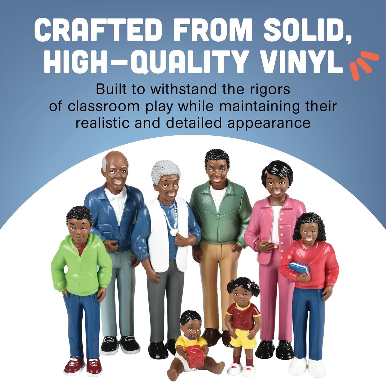 Bring diversity into playtime with Constructive Playthings' Pretend Play Multi-Cultural Families. Add our 8 piece contemporary families, from grandpa to baby, to play time and block play! Four complete units include Caucasian, African-American, Asian and Hispanic families. Mix and match the pieces so your child can pretend their play family is like it is in their home! Each solid vinyl, freestanding figure is beautifully painted and realistically detailed. Not only does this set spur your child's imagination, it also helps children learn to take turns and share, develop friendships, and cooperate with others - all important factors in social and emotional growth. Ideal for any classroom or play space, this multi-cultural family set is recommended for children ages 3 and up. Constructive Playthings is committed to providing safe, compliant products and a healthy, safe working environment worldwide. We require that all products meet all applicable federal regulations, which we review on a continuous basis