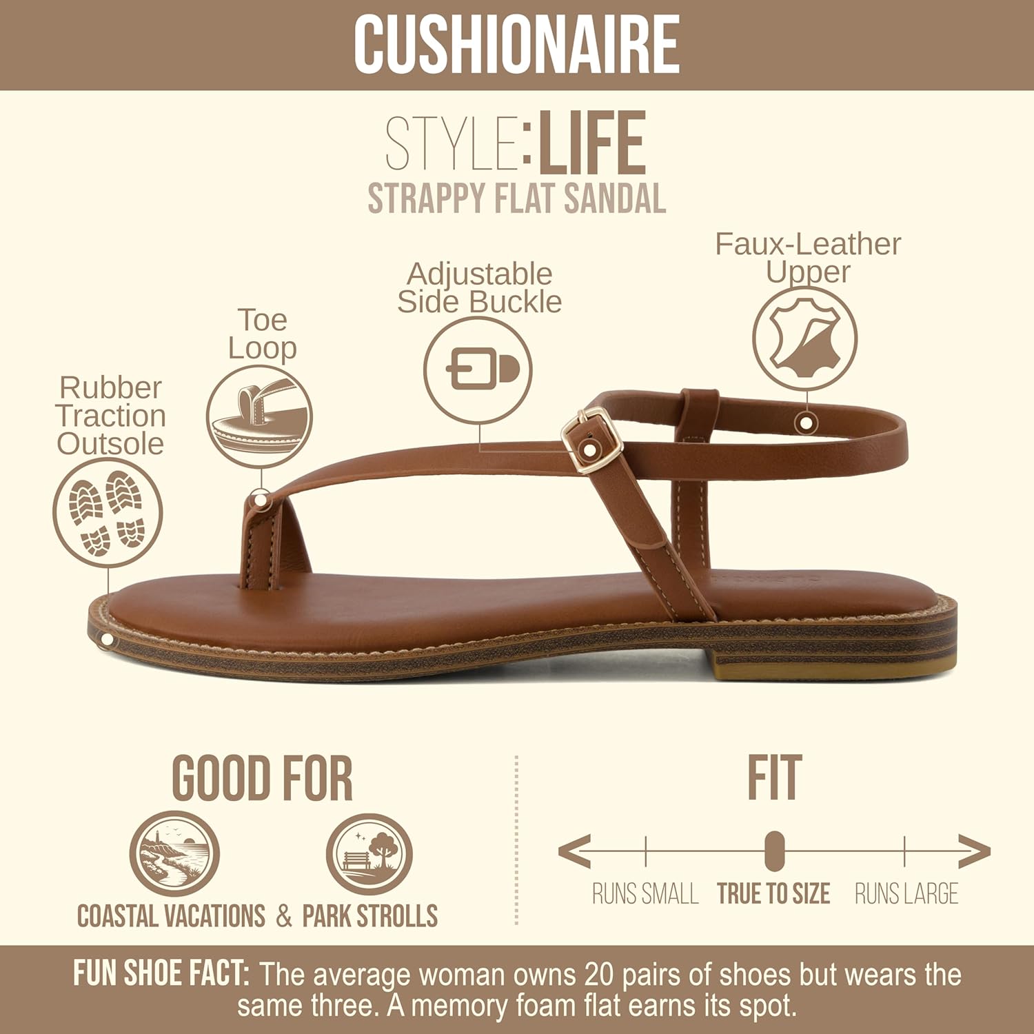 Take on summer days with style and ease in this CUSHIONAIRE Life chic flat slide sandal โ the perfect blend of comfort and minimal elegance. Whether you're walking the boardwalk at sunset or heading to a seaside dinner, these sandals for women 2025 are made to move with you. Crafted with a soft vegan leather upper and detailed toe ring strap, this sleek silhouette offers a polished, dressy look while maintaining a relaxed feel. The adjustable ankle strap adds a secure fit, while the contoured footbed provides all-day comfort for spontaneous strolls or long evenings out. Lightweight and easy to wear, these slide sandals are ideal for pairing with summer outfits โ from linen pants to maxi dresses. Designed to feel like your go-to flat sandals but elevated with a minimalist touch, they transition effortlessly from casual beach walks to elevated gatherings. Whether you're searching for versatile summer shoes or reliable beach sandals that donโt sacrifice style, this design checks every box. The smooth straps hug your foot gently, while the flexible sole moves naturally with each step. Offered in classic neutrals and trending tones, including a sophisticated option perfect for anyone seeking white sandals woman love to wear, these modern sandals women reach for again and again bring comfort, style, and subtle flair to every summer plan.