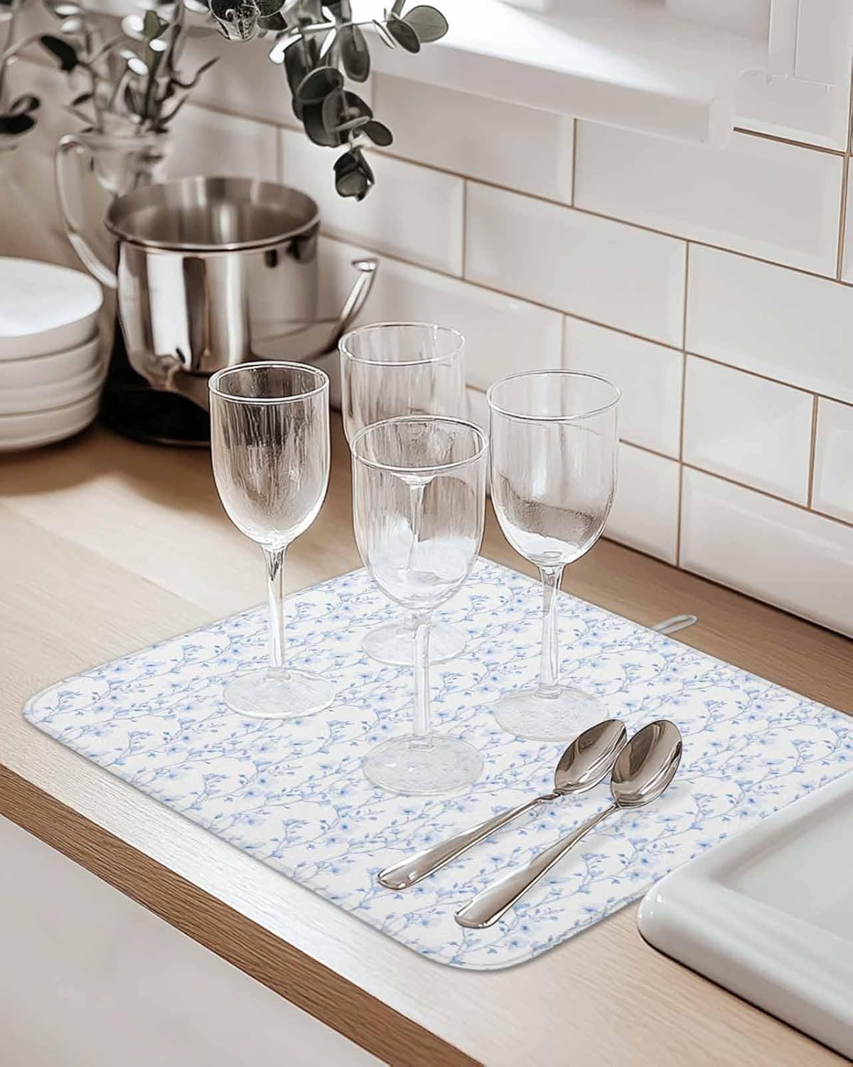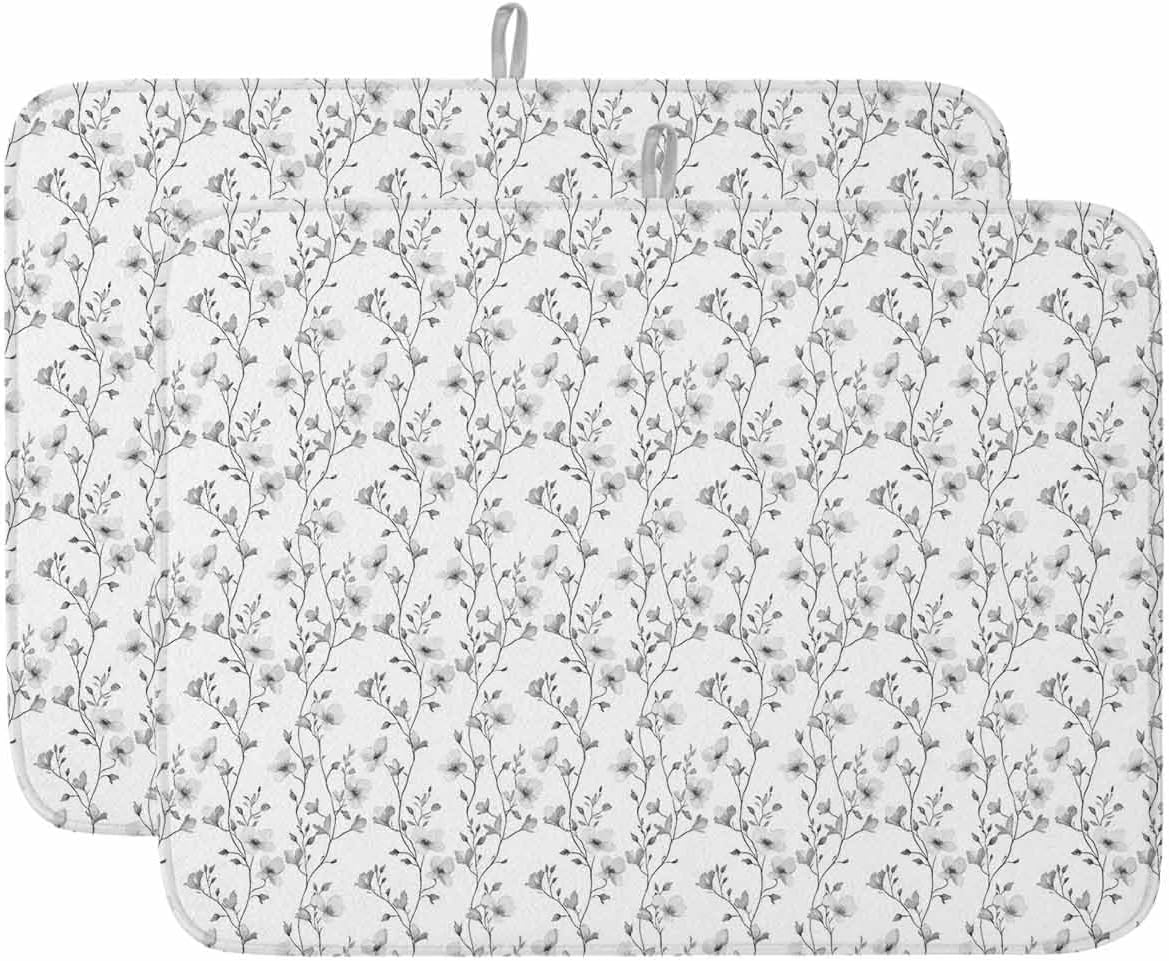 Dayforbarley Highly Absorbent Dish Drying Mat Premium Material This dish drying mat is made of absorbent polyester fabric that protects kitchen countertops from scratches and wetness. It has a soft texture and rolls up easily for storage Versatile Mat Our dish drying mat is suitable for draining dishes, cups, pots and pans, fruits and vegetables. It can also be used as a non-slip mat or heat shield Stylish Design This dish drying mat is printed with a stylish design that is practical and brings a touch of aesthetics to your kitchen Easy To Care Our dish drying mat is machine washable, do not bleach and air dry after washing