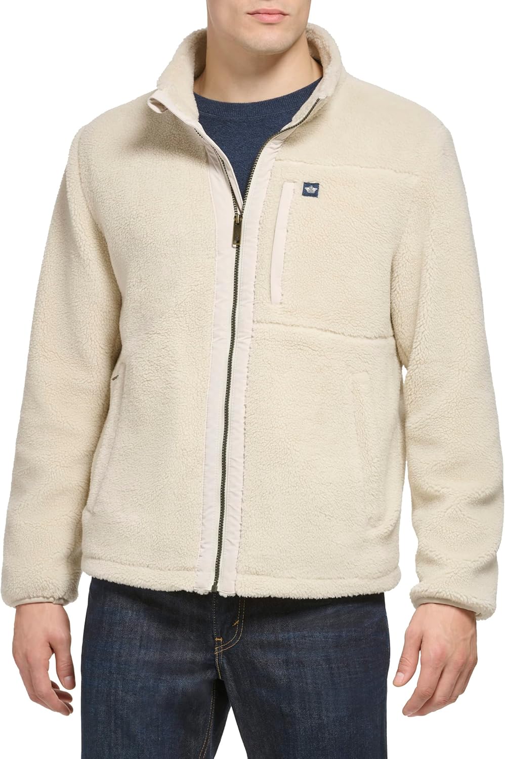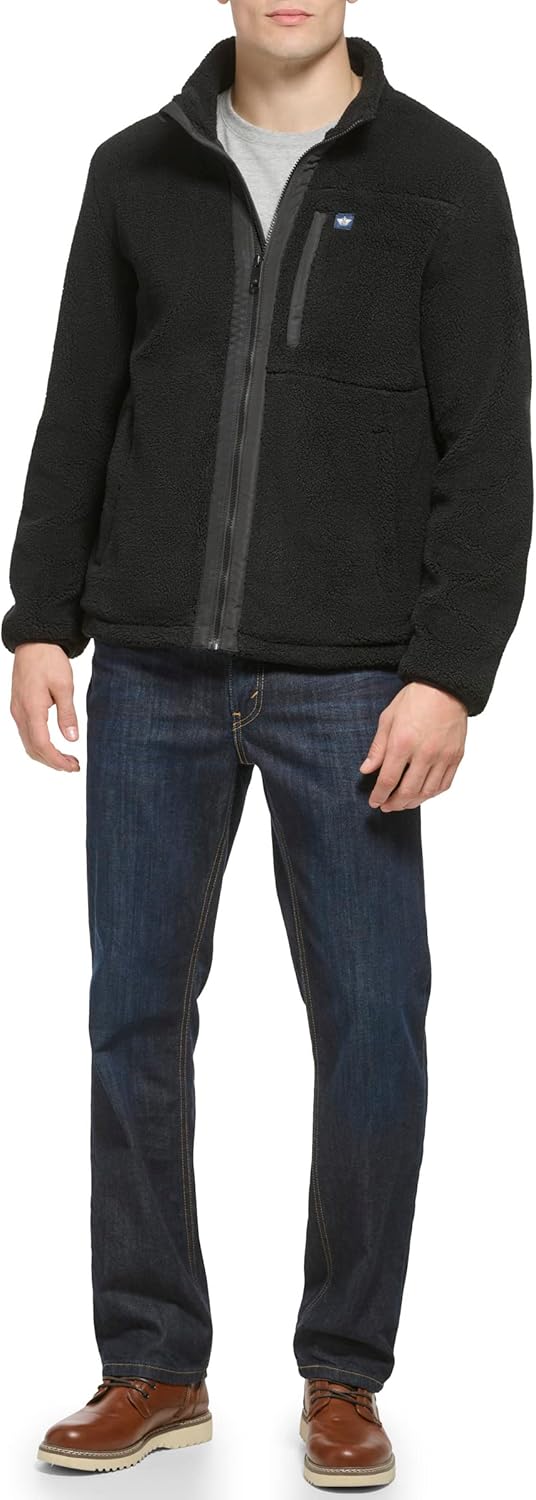 STYLISH FEATURES: Sherpa body with a cinch hem and cuffs. FUNCTIONALITY: Center front zipper closure, two lower zipper pockets, one welt chest pocket. WARMING FEATURES: All over warm sherpa fleece, cozy stand collar.