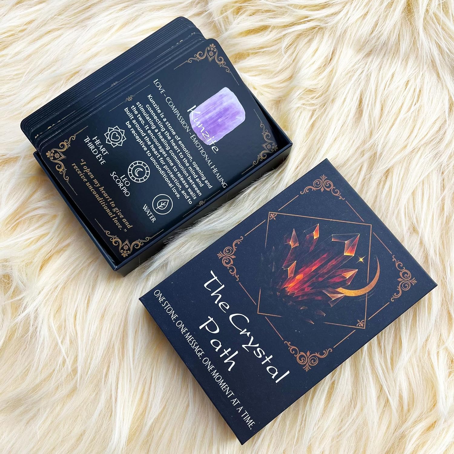 Crystal Information Cards Deck, 50 Crystal Meaning Cards, Healing Crystal Affirmation Deck with Chakra and Zodiac Associations and Energy Divination, Meditation Tool, Used like Tarot, Oracle or Angel Cards