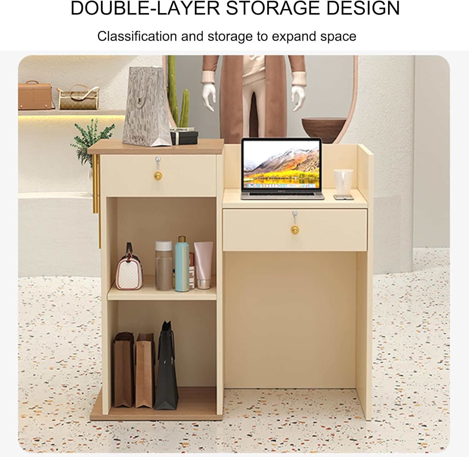 Standing Retail Checkout Counter Table:Maximize your efficiency with the spacious desktop design, providing ample room for paperwork, client interactions, or multitasking. The versatility of this desk makes it suitable for various settings. Small reception desk is made of high-quality thickened MDF, the panels are tightly connected to each other and the overall structure is stable. The surface of the front desk is smooth and easy to care for. The drawer can be pushed and pulled smoothly for long term use. Round edges are in favour of pampering your skin to prevent scratches and bumps Specification: Product name: Reception desk Material: MDF board Style: simple and modern Applicable spaces: restaurants, centers, shops Package Included: 1* Reception desk