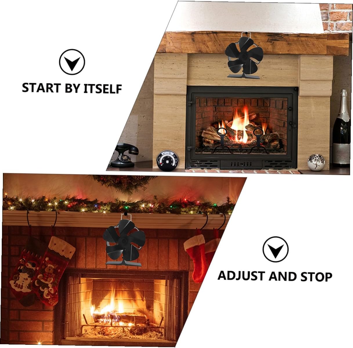 Package Include 1 x fan Features -Product Info:Fireplace fan - Color: Black. - Material: Aluminum alloy. - Size: 13.00X11.00X6.50cm/ 5.11X4.32X2.55inch. - Well crafted blades, truly silent operation, no loud blower noise like other fans created stove fan. - Multi blades design, increases much more wonderful using experience. Greater airflow and velocity at lower stove temperatures fireplace fan. - It is powered by heat, battery free, cost saving and reduced emissions from burning less fuel heat powered fan. - Simple and stylish design, the can drive large thermal wind heating fan. - The stove fan is powered by turning heat into energy, without using any battery or electricity stove fans.Goods Descriptionheating fan No battery or other electricity, it is convenient for you to use.heat powered fan Are you still worried about that there is too much heat waste from the fireplace? And this fireplace fan can help with the problem, transform the orientation of the heat and let your room become warmer