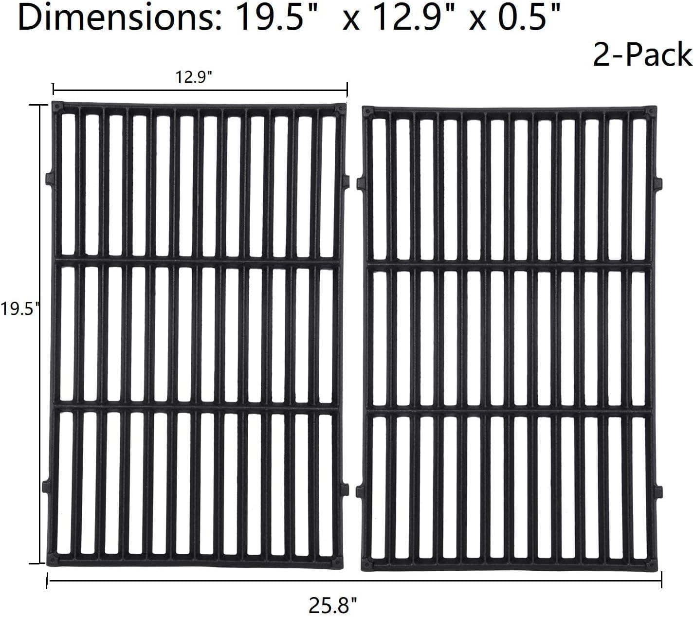 Specifications: Replacemen parts for Weber 7620 & Weber 7524 Fits for Weber Genesis 300 series gas grills (with Front Control Knob)(2011-2016): Genesis E-310, Genesis E-320, Genesis E-330, Genesis S-310, Genesis S-320, Genesis S-330 This is aftermarket replacements combination, DON'T fit for Genesis II and Genesis II LX series, also DON'T fit for Genesis 300 with side-knob control panel, please double-check the model of your bars before you order These parts kit includes 5 pcs flavorizer bars and 2 pcs grill cooking grates Flavorizer bars dimensions: 17.5 inches long, 2.25 inches wide, 2.375 inches hide Grill cooking grates dimensions: 19.5 x 12.9 inches for each, 19.5 x 25.8 inches for 2 units Flavorizer bars material: stainless steel Cooking grates material: cast iron Sold heat shield plates and grill grid grate in a set, one-stop shopping, get what you need in a decent price to renew your grill