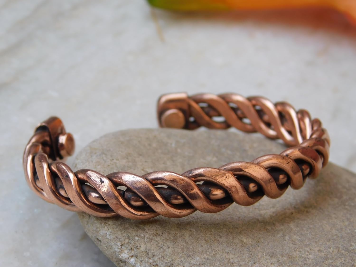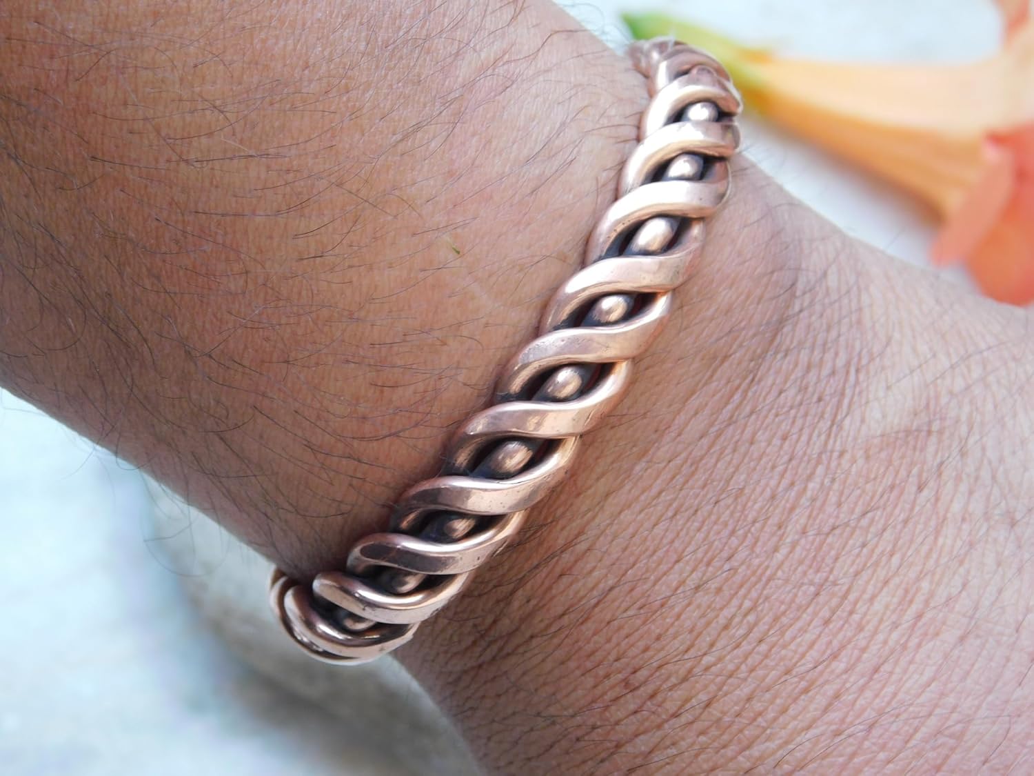 How to Clean Copper Bracelet It is natural for copper to change its color and leave green deposits on the skin. This happens when the copper reacts with water or air, by the process called Oxidization, and this is a natural process. The green deposits on the skin can be easily washed off with soap water. Tips to Clean the copper bracelet: Soak the bracelet in a mix of water with lemon juice or vinegar. Rinse the bracelet with warm water and dry thoroughly with a soft cloth. Apply tomato ketchup on the bracelet and rinse with warm water and dry thoroughly with a soft cloth.