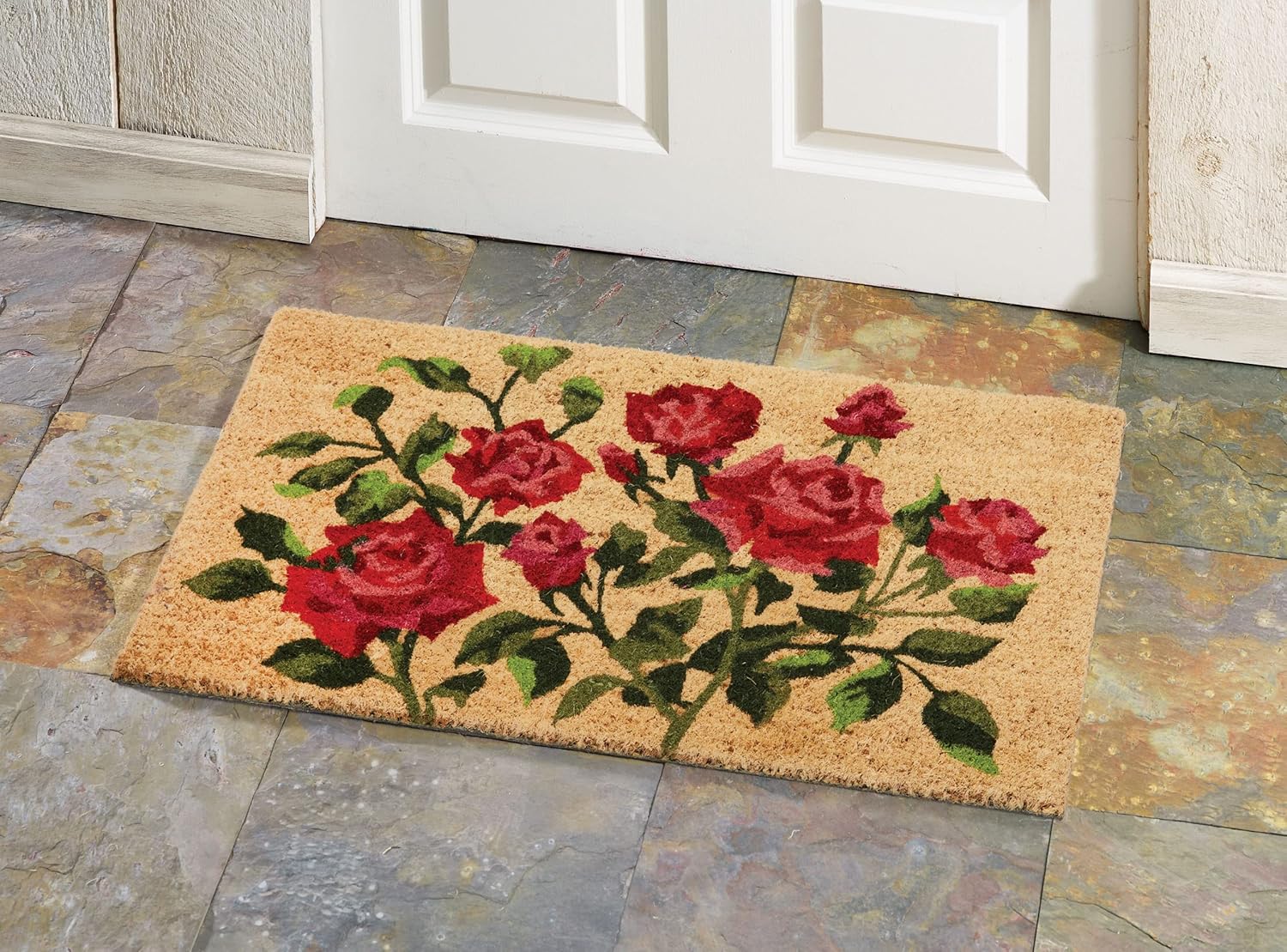 Elevate the everyday with Home Furnishings by Larry TraversoLarry Traverso's Red Roses Doormat is a practical outdoor accent piece awash in artful detail. Hand-stenciled roses detail an eco-friendly frame, crafted from 100% sustainably-sourced coir fiber. Coarse, chemical-free bristles excel at scrubbing shoes clean. A responsible alternative to synthetic rugs, Larry Traverso's decorative floor mats effortlessly enliven stoops, porches, patios, and entryways. The Home Furnishing by Larry Traverso Red Roses Doormat measures 30-inches long by 18-inches wide. Shake or vacuum to clean; do not submerge or use atop wet surfaces. For best results, keep only in sheltered areas.Home Furnishings by Larry Traverso specializes in distinct home decor that epitomizes superb individuality. Larry Traverso believes that home decorating should be easy, enjoyable, and affordable. Indulge in stress-free style with Larry Traverso.