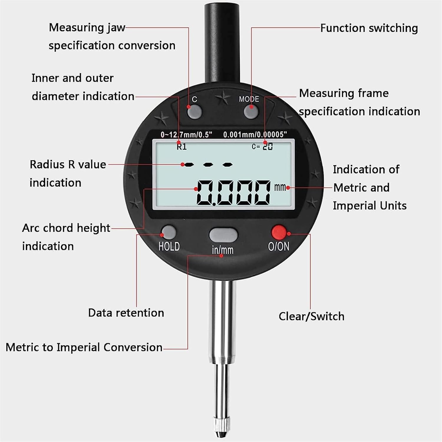 ▶Multiple sets of measuring claws are adopted, and measuring claws with different spans are selected for different arc-shaped surface radii and measurement accuracy;▶5 Interchangeable Measuring Jaws: 10mm/20mm/30mm/60mm/100mm. can both measure Outer & Inner Radius of arcs▶Inch/Metric Conversion: Switchable between mm and inch.▶Hard aluminum alloy alloy probe.compact and firm structure.▶Large-screen LCD display, fast and convenient reading.Specification:Material: aluminum shellTest range: 0-12.7mmRadius range: 5-700mmDisplacement measurement error: △S<0.02*RRadius measurement error: △R<0.01*RProducts include:1 * Digital Radius Gauge5 * Measuring Jaws5 * Storage BoxNotes:- If you have any questions, please write to us and we will be happy to help you.