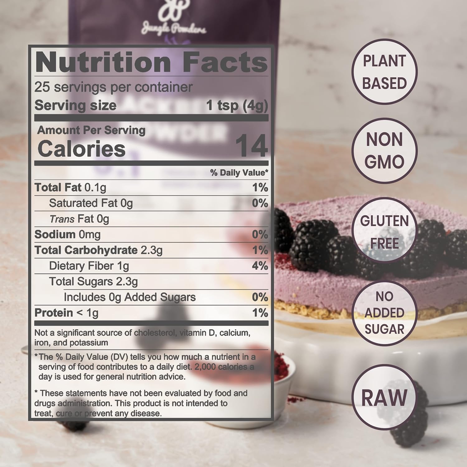 Introducing the Jungle Powders Fruit Lover's Bundle - three tantalizing flavors: Freeze-Dried Peach, Blackberry, & Mango Powders. Delve into natural goodness with these premium fruit powders. Genuine Fresh Peach: Experience the sweet & tangy taste of fresh peaches with our Freeze-Dried Peach Powder. Perfect for adding natural sweetness to recipes, from smoothies to desserts. Natural Freeze-Dried Blackberry: Enjoy the intense flavor of blackberries with our Freeze-Dried Blackberry Powder. Packed with antioxidants & nutrients, it's perfect for baking, smoothies, or topping yogurt and oatmeal. Genuine Fresh Mangoes: Discover tropical delight with our Freeze-Dried Mango Powder. Crafted from premium Alphonso mangoes, it adds vibrant color and luscious flavor to dishes, from baking to smoothies. 100% Fruit, No Additives: We believe in providing you with the purest form of fruit powders. That's why our Jungle Powders are made from 100% real fruit, with no added sugars, fillers, or additives. Powerful Nutritional Profile: Our freeze-drying technology preserves 99% of the fruit's original nutritional value, ensuring that you get the maximum benefits with every serving. Each ounce of powder contains the nutritional equivalent of 7 to 10 ounces of fresh fruit. Colorful, Fruity, & Fresh: Bring a pop of color & flavor to your dishes with our vibrant fruit powders. Whether you're baking, blending, or cooking, just a sprinkle or spoonful is all it takes to transform your creations into culinary masterpieces. User-Friendly Packaging: Our Jungle Powders come in resealable stand-up pouches, ensuring freshness & convenience. Simply reseal the pouch after each use to prevent clumping & preserve the quality of your fruit powders. Elevate your culinary adventures with the Jungle Powders Fruit Lover's Bundle. Order now & experience the natural goodness of Jungle Powders!
