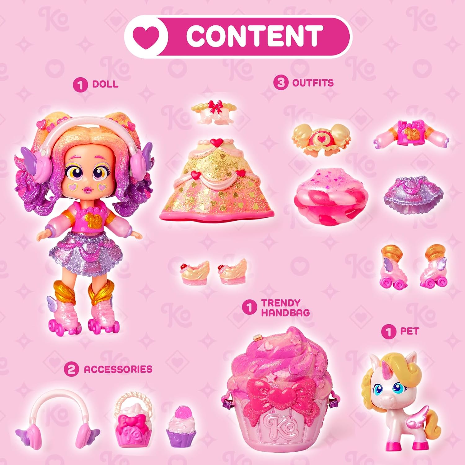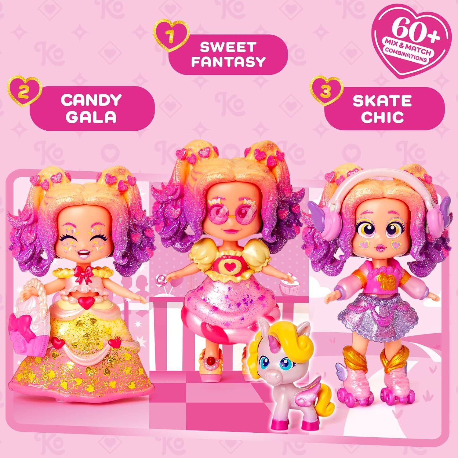 | Included Components | 1 exclusive Kookyloos doll, 3 candy outfits, 2 pairs of shoes, 1 small unicorn, 1 snack accessory, interchangeable mix and match accessories, 1 children's size bag (for carrying and collecting) |