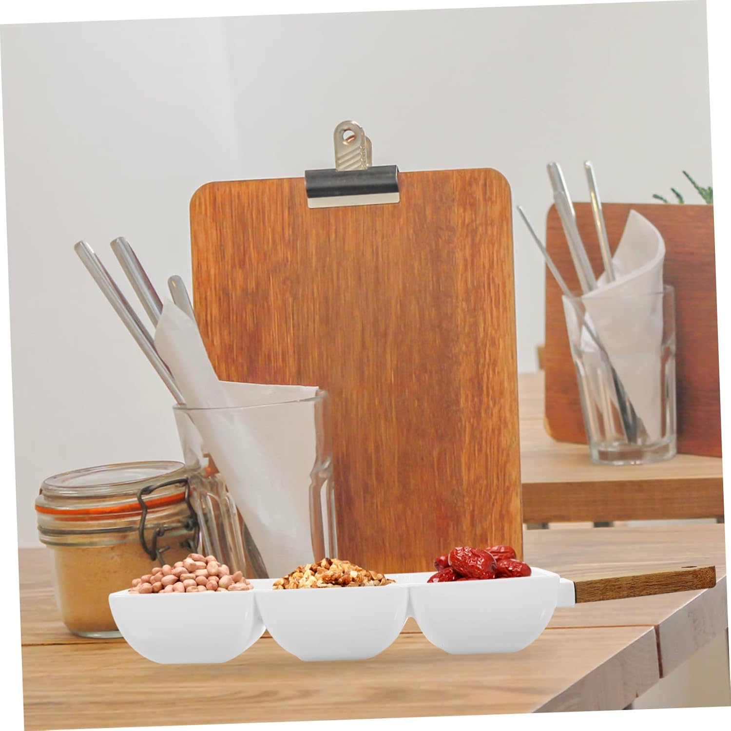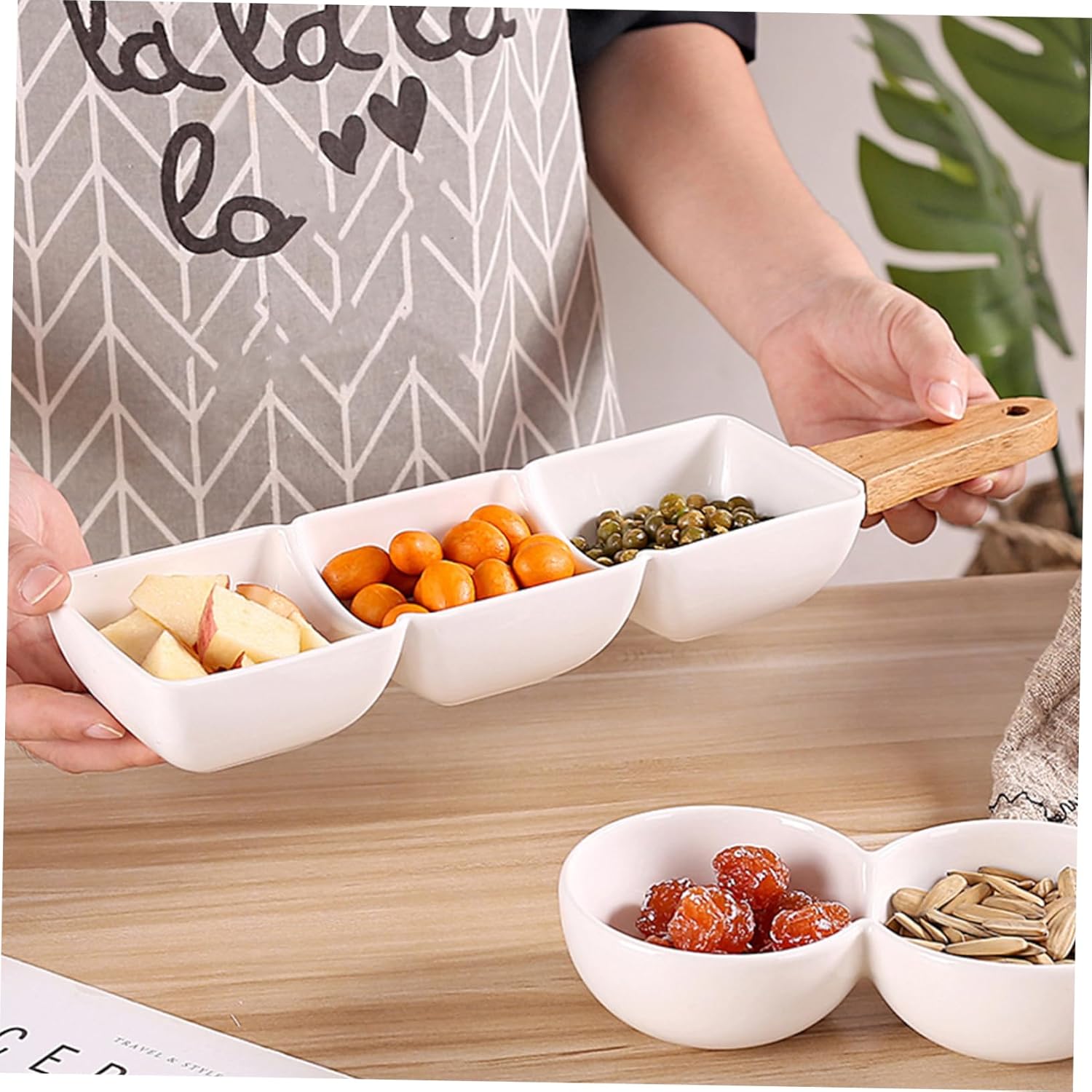 Package Include 2 x Storage Trays Characteristics -Material:Ceramic, wood Sauce Holder - Color: As Shown Ceramic Divided Plate - Size: 37.50X8.50X4.50cm/14.74X3.34X1.77in Food Storage Plate - Suitable for many places, such as home, restaurant, hotel, buffet, hot pot shop and more Divided Holder. - The appetizer tray is made of ceramic with a wooden handle Smooth edges that won't hurt your hands Our ceramic plates are divided into 3 compartments, allowing you to serve a variety of appetizers Sauce Container. - Stable bottom, this snack bowl with wooden handle can be placed firmly Smooth surface, easy to clean Food Storage Container. - craftsmanship practicability and durability, which is very Sauce Dish with Handle. - Suitable for holding sauce, salt, vinegar, sugar, salad, flavor, spices, snack and appetizers, etc Dessert Goods DescriptionCeramic Sauce Dish Multifunctional use, suitable for storing cold dishes, sauce, snack, fruit, etc.Soy Sauce Dish With stable bottom, the snack bowl an be placed on the table firmly.Food Container This product is a snack bowl.Seasoning Plate Made of ceramic material, and