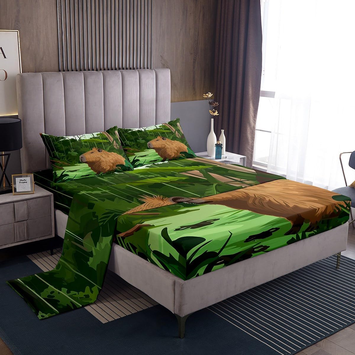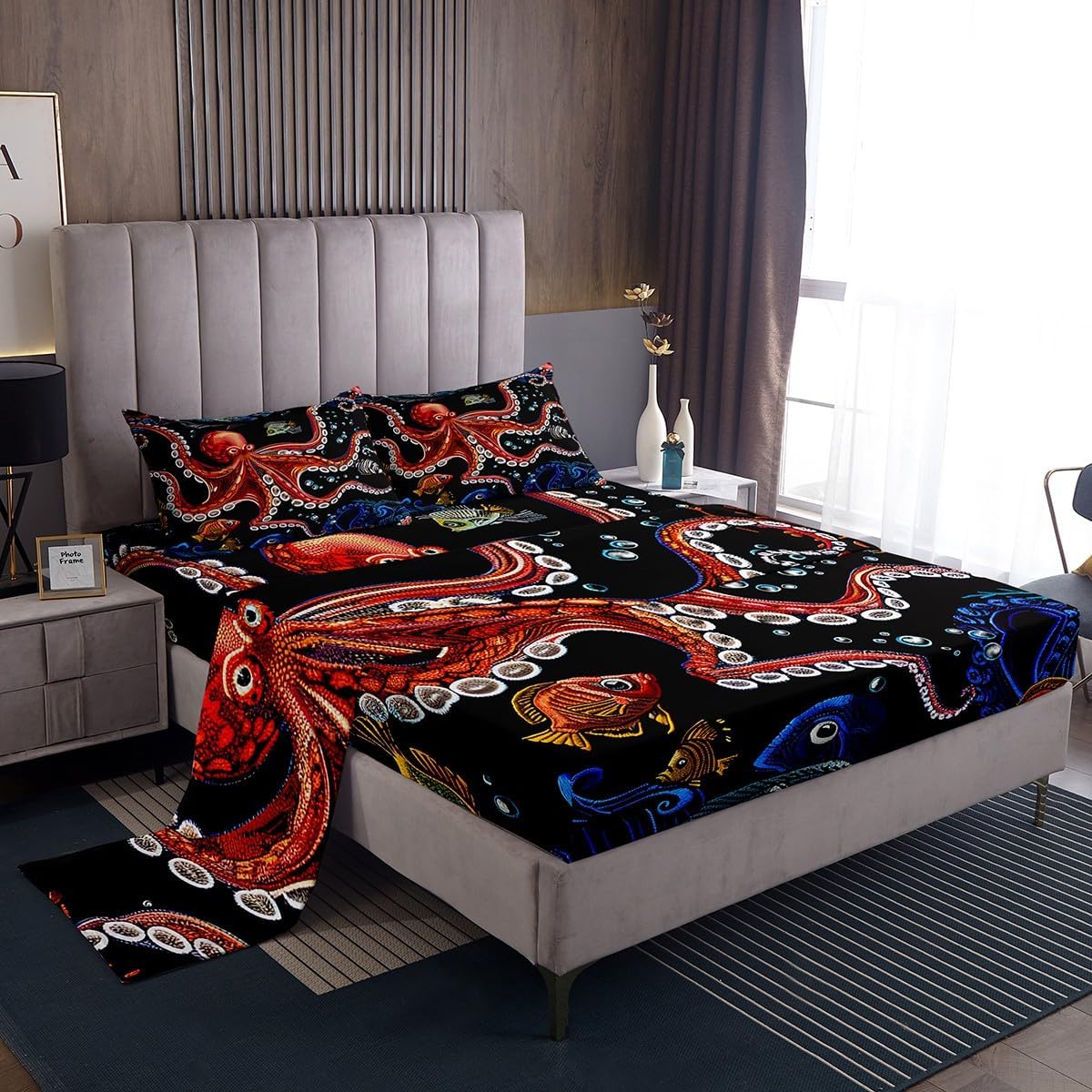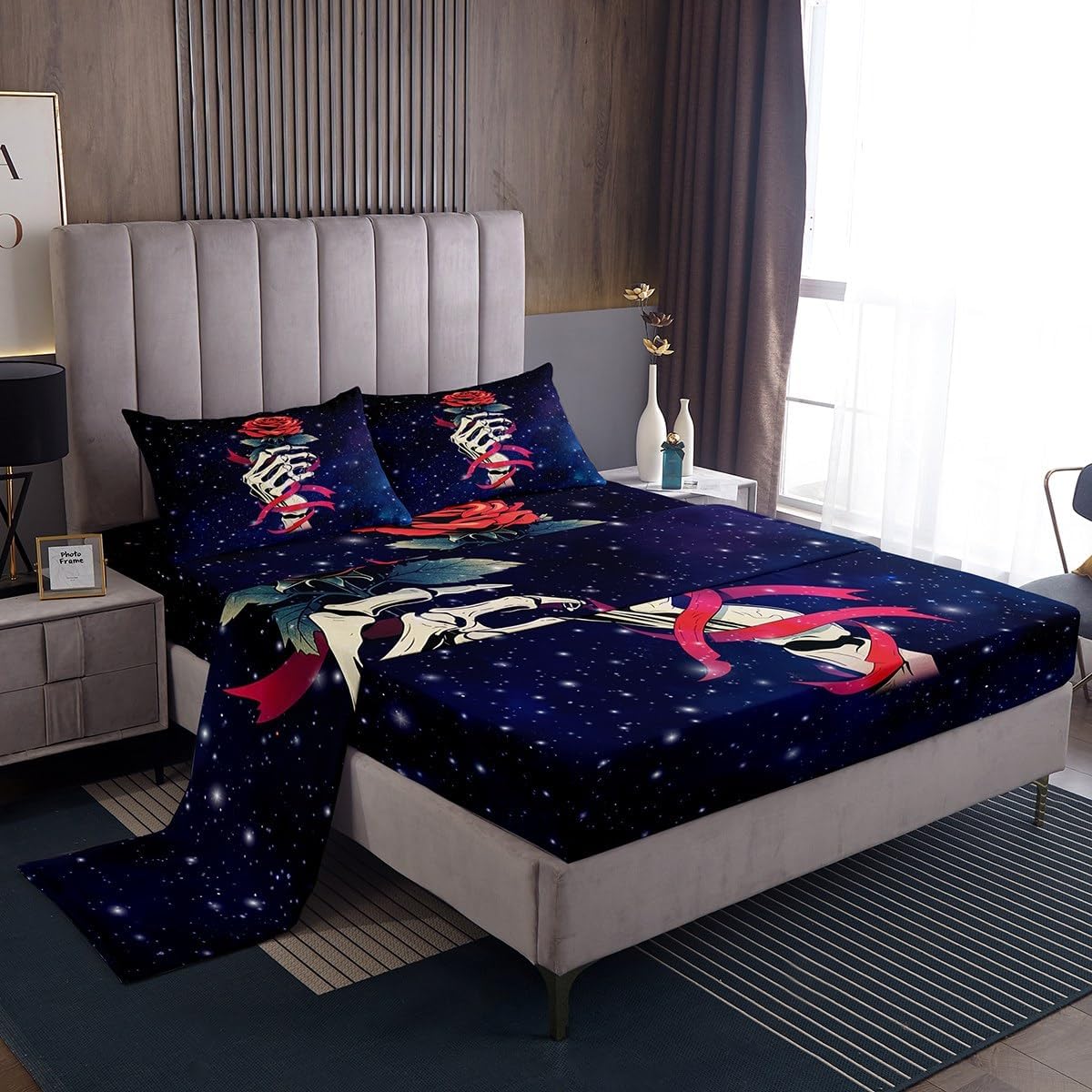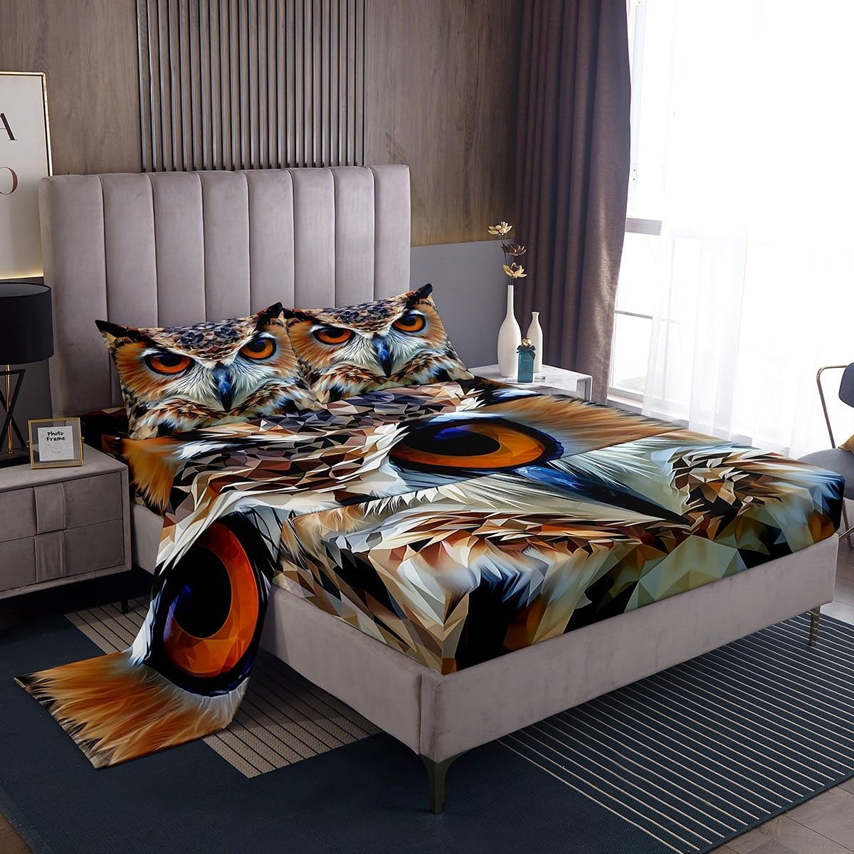 Package Include: Fitted Sheet, Flat Sheet and Pillowcase. High quality Fitted Sheet Set 3D Pattern Bedding Set, simply decorating your rooms any time you want, bringing you fresh feel for year round use. Size Information: Twin size 3pcs Fitted Sheet set: 1 Fitted Sheet 39"W x 75"L x 16"H, 1 Flat Sheet 66"W x 96"L, 1 pillowcase 20" x 30" Full size 4pcs Fitted Sheet set: 1 Fitted Sheet 54"W x 75"L x 16"H, 1 Flat Sheet 81"W x 96"L, 2 pillowcase 20" x 30" Queen size 4pcs Fitted Sheet set: 1 Fitted Sheet 60"W x 80"L x 16"H, 1 Flat Sheet 90"W x 102"L, 2 pillowcase 20" x 30" King size 4pcs Fitted Sheet set: 1 Fitted Sheet 78"W x 80"L x 16"H, 1 Flat Sheet 90"W x 106"L, 2 pillowcase 20" x 36" Personalize your bedroom: Beautiful design and colorful print, makes your bedroom unique and brings you a wonderful dream. Washing instructions: Machine wash separately in cold water,hang dry, do not bleach. Occasion: The soft Fitted Sheet bedding sets designed for Children ,Adult, Men, Women, Teens. This Fitted Sheet set is also suitable for full seasons, Spring, Summer, Autumn and Winter.