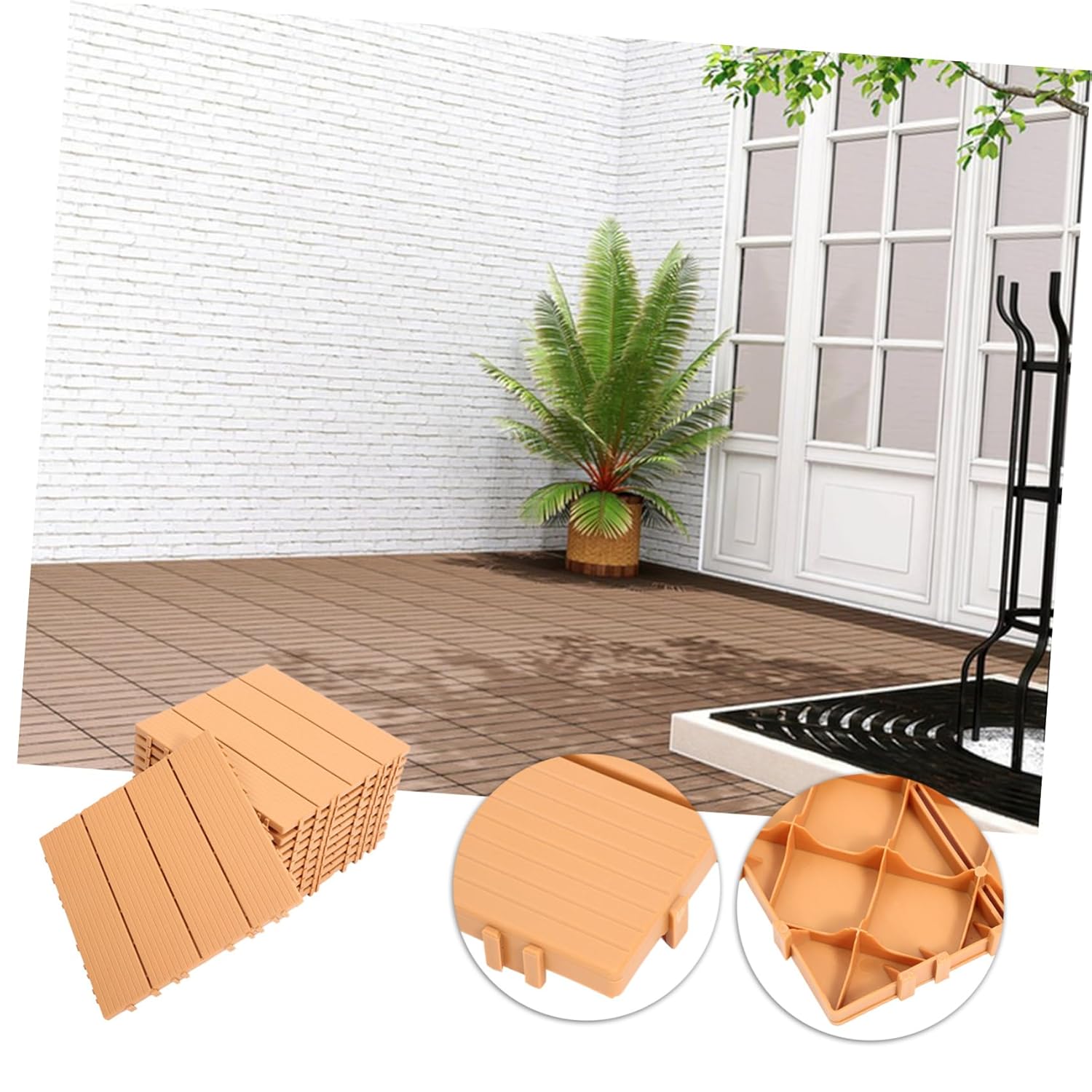 Package Include 11 x Interlocking tiles Features -Material:PP balcony flooring -Color:Brown interlocking floor tile -Size:29.00X29.00X2.00cm/11.40X11.40X0.79in Interlocking Decking Tiles - Interlocking deck floor your life more convenient with using our decking outdoor flooring Outdoor Deck Tiles. - Interlocking deck floor has a wide range of use and is an excellent decorative floor for gardens, courtyards, terraces balcony interlocking floor. - The material is and , which is wear resistance and for the long time use deck tiles outdoor. - Compact and lightweight, it is easy to move and store, quick for you to install and disassemble Backyard Deck Tile. - Easy DIY installation even over slightly uneven surfaces. Interlocking deck tile can be used as a good housewarming to friends. imitation wood interlocking decking floorGoods InformationOutdoor Deck Tile Good texture, fine workmanship, sturdy and hard, wear resistance.Balcony Deck Tiles If you are looking for delicate Interlocking decking tile, then look at here, interlocking floor, it is reliable, and .Interlocking Flooring Tiles Manufactured with and reliable PP material, which can be used for a long term.imitation wood flooring Suitable for outdoor garden, home balcony, yard, backyard and some other places use