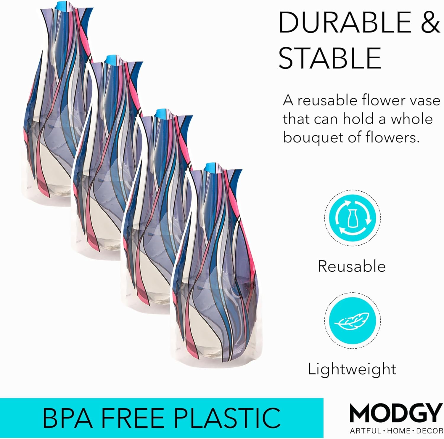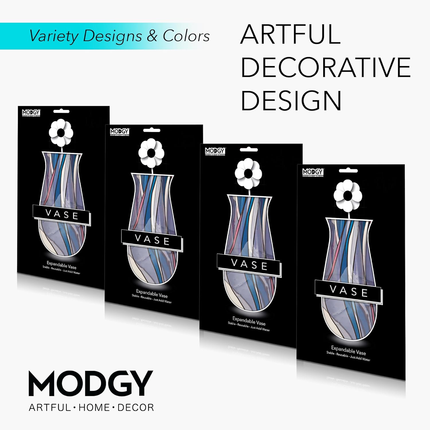 MODGY Collapsible and Expandable Flower Vase Add uplifting color and decor to any living space with our collapsible and expandable flower vases. Modgy flower vases arrive flat. To use the flower holder simply add water to expand the flower base. It’s a plastic vase for flowers, stable and durable, unlike glass vases that collect dust, chip, or break. Modern vases decorative, come in a variety of vibrant designs and attractive colors. Spruce up your home decor, office, or event with these collapsible flower vases. They fold to tuck away for any occasion. Perfect Decor For Any Occasion Flowers make a great gift for any occasion. Use this flower vase for roses to make that gift more precious. It makes a great flower vase for home decor. Use the flower vase for wedding centerpieces, flower vase for tables, flower vase for windows, flower vase for bathroom, flower vase for kitchen, and more. Grab your favorites and use these small flower vases to fit the mood or theme of any occasion or decor.