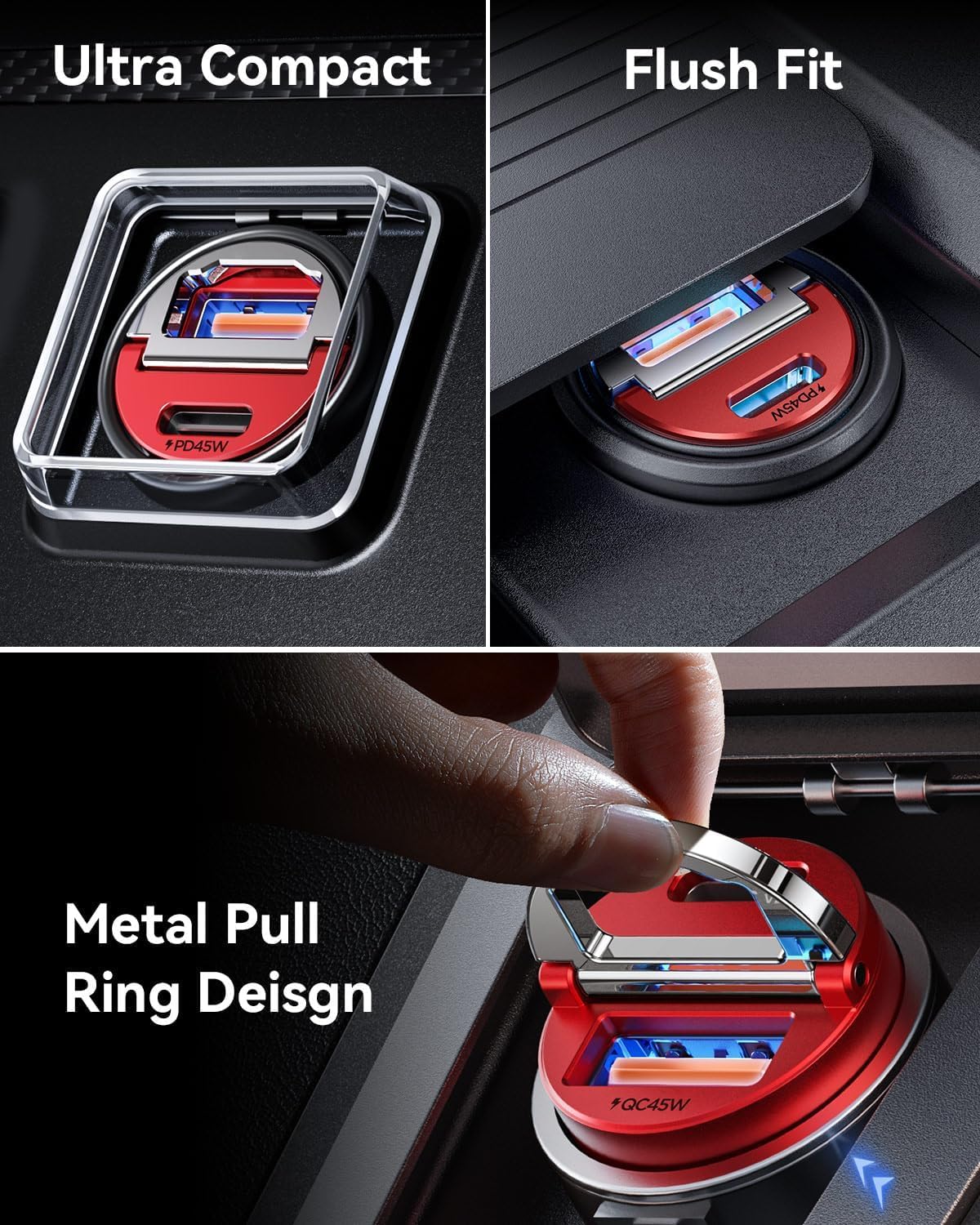 | Additional Features | 2-pack 90w USB C car charger, Mini design for traveling, Pull Ring Desin, All metal |