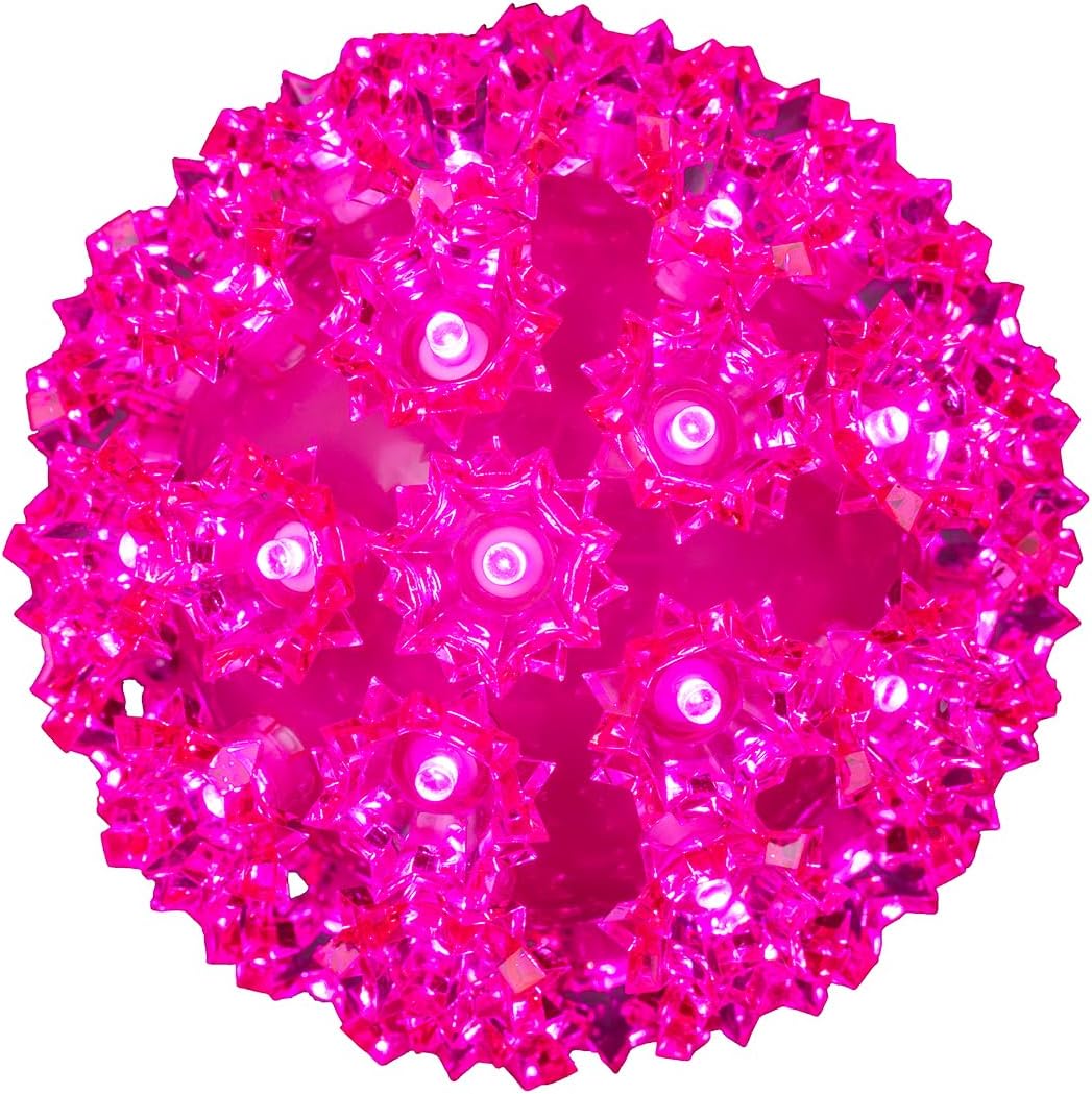 Immerse yourself in the festivities of any season with our Pink Starlight Sphere lights; a statement of your spirit that goes beyond mere decoration. These Christmas ball lights for trees and gardens are designed to create a magical atmosphere that will make your gatherings unforgettable. Experience true 360 degree lighting with each durably constructed LED starlight sphere, featuring 100 super bright 5mm wide-angle lights. Our starlight spheres are accentuated by a plastic "crystal" or "starburst" around each bulb, further casting their wondrous light in every direction. These lighted ornaments are designed for durability, with top-quality materials and a riveted seam for maximum protection from the environment. Our Christmas outdoor light balls are rated for 40,000 hours of lighted time, making them the preferred choice of professional decorators and homeowners alike. The quality construction of our 5mm wide-angle bulbs ensures that the light shines brightly from all angles, enhancing the brightness and visibility of your decorations. With the bulbs' unique concave design and full wave rectification, these spheres offer long-lasting performance and maximum visibility without any flickering. Our outdoor sphere light is backed by a 1-year/3-season manufacturer's warranty, offering you peace of mind with your purchase. This versatile outdoor holiday light ball can be used on trees, pergolas, porches, and even plinths or empty birdbaths, making them perfect for any decoration lighting needs.