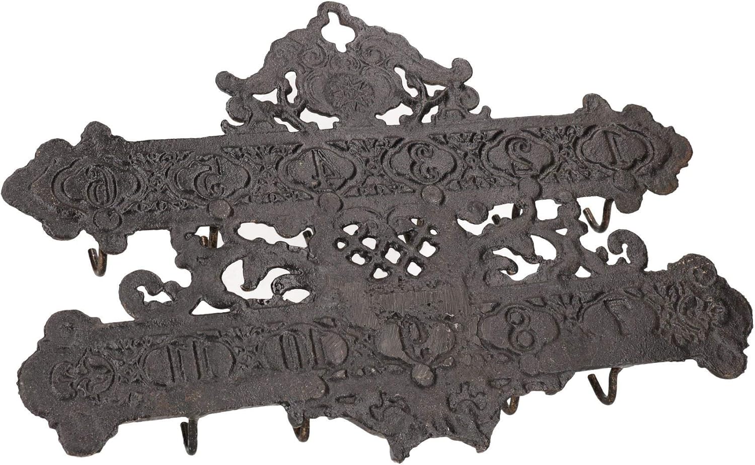 Numbered key rack / holder. Painted Faded Gold. Easy to fit with screws (not included). Antique style finish. 11 hooks in total with numbers above the hooks. Great on a wall, reception room, closet or greeting room. Length: 28cm approx. Width: 20cm approx. Depth: 5cm approx.This item is NEW, but comes in "Rustic" condition and is being sold as pictured.