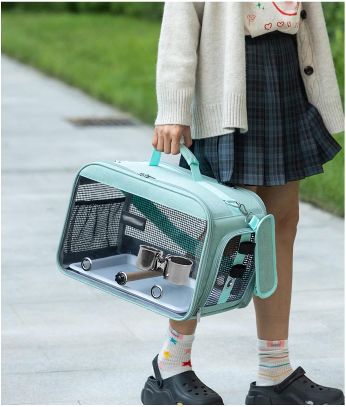 Features: Portable & Comfortable Design: This thin bird carrier features adjustable shoulder straps for easy transport, allowing you to enjoy outdoor activities with your small birds while keeping they safe and comfortable. Clear & Breathable Structure: Made with see through Oxford fabric, this bird travel bag proposals excellent visibility and ventilation, letting your birds observe their while staying secure. Stable Perch for : Includes a sturdy standing perch designed for bird comfort, helping they stay stable and relaxed during travel while reducing stress in new places. Convenient Feeding Access: Features built in feeding openings for quick access to food and water, ensuring your birds stay nurtured and hydrated throughout the journey without hassle. Safe & Protective Fabric: Constructed with pet safe Oxford fabric, every detail is carefully crafted to provide a secure and pleasant space for your birds when on the go. Specifications: Product name: Bird carrying bag substance: Oxford cloth [Flexible Design]This bird backpack is equipped with adjustable shoulder straps and rolls-up awning, making it versatile. Lower the awning to keep your birds warm and safe; summarize the awning to increase ventilation and allow you to observe your birds unobstructed, ensuring their comfort and allowing you to keep an eye on they throughout your trip. Note: Before using the accessory, please check if it is compatible. Pay attention to the storage methods. Package includes: Bird bagx1 standing polex1 feederx1 trayx1