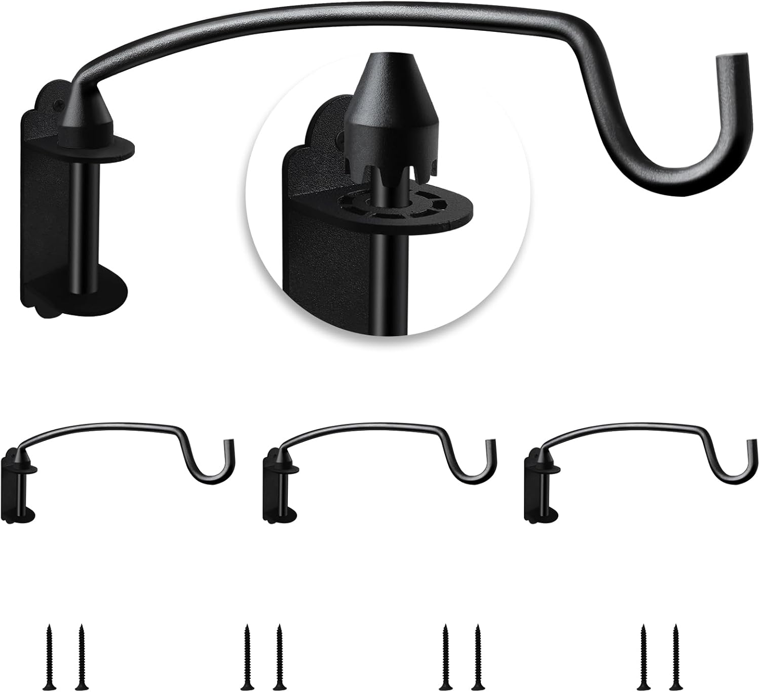 Transform your outdoor space with this elegant and sturdy wall mount plant hanger bracket. The decorative curved hook design adds a touch of classic style while providing reliable support for your hanging baskets, bird feeders, wind chimes, or lanterns. Crafted with durability in mind, this heavy-duty black bracket features a graceful spiral hook that perfectly showcases your suspended garden displays. The curved design keeps your hanging items at an ideal distance from the wall, while the robust construction ensures stable support for your outdoor decorative elements. Perfect for porches, patios, decks, or garden walls, this versatile mounting bracket combines both form and function. The sleek black finish complements any exterior décor while resisting outdoor elements. Installation is straightforward, and the bracket's thoughtful design helps protect your wall while displaying your favorite hanging plants and outdoor accessories with style.