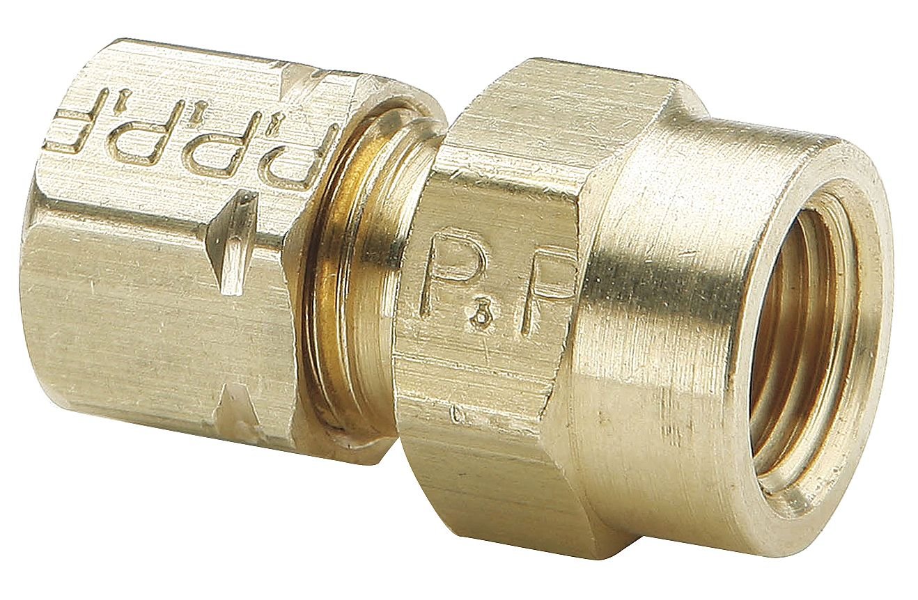 Female connector, compress-align, tube size 3/8 inch pipe size 1/4 inch tube x FNPT connection, material of construction Brass, pressure (psi) 1000, Temp range -65 to 250 degree F, package quantity 10'.