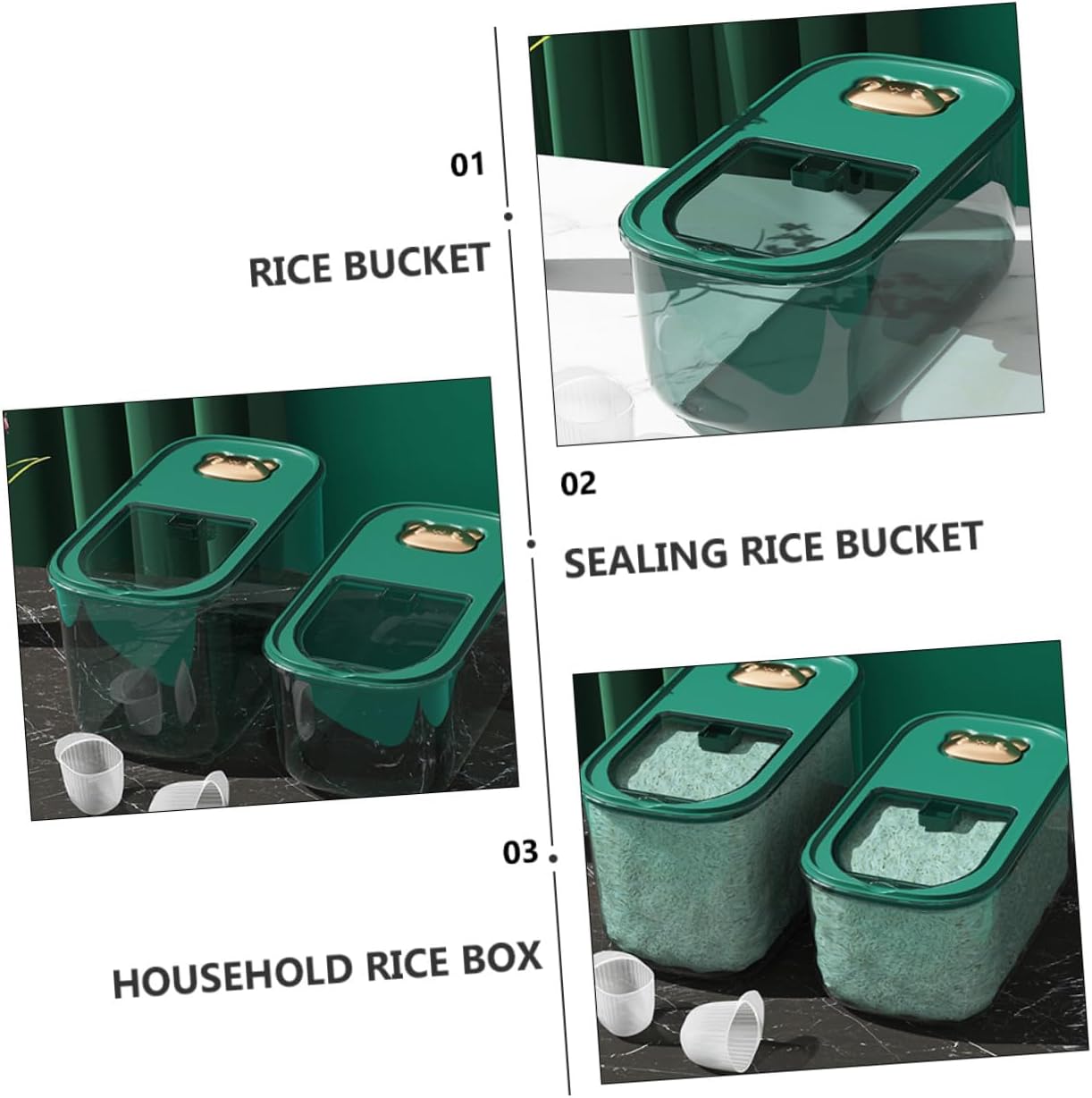 Package Include 1 x Rice Bucket Features - Material: PET, PP. -Product Info: rice jar - Size: 35.00X23.00X14.00cm/13.76X9.04X5.50inch. - Capacity: 5kg plastic sealed rice bucket. - A rice bucket with open lid, - and moisture- design, safe rice storage plastic rice bucket. - Suitable for storing rice, flour, soybeans, miscellaneous grains and some other items rice container. - A nice housewarming choice for your close friends or dear family members, they will like it grain rice bucket. - Made of environmentally friendly materials, and can be used for a long time. - Smooth and rounded edges design, no hard objects, and will not hurt your hands multi-size rice storage bucket.Goods Informationplastic sealed rice bucket The household rice bucket is made of food-grade safe materials, safe and , long-term use, dust- and moisture-.rice buckets A nice housewarming choice for your close friends or dear family members, they will like it.rice bucket It is more convenient to use, can and moisture, so that the rice will stay fragrant for a long time.rice container storage It can be used to store grains such as rice and soybeans