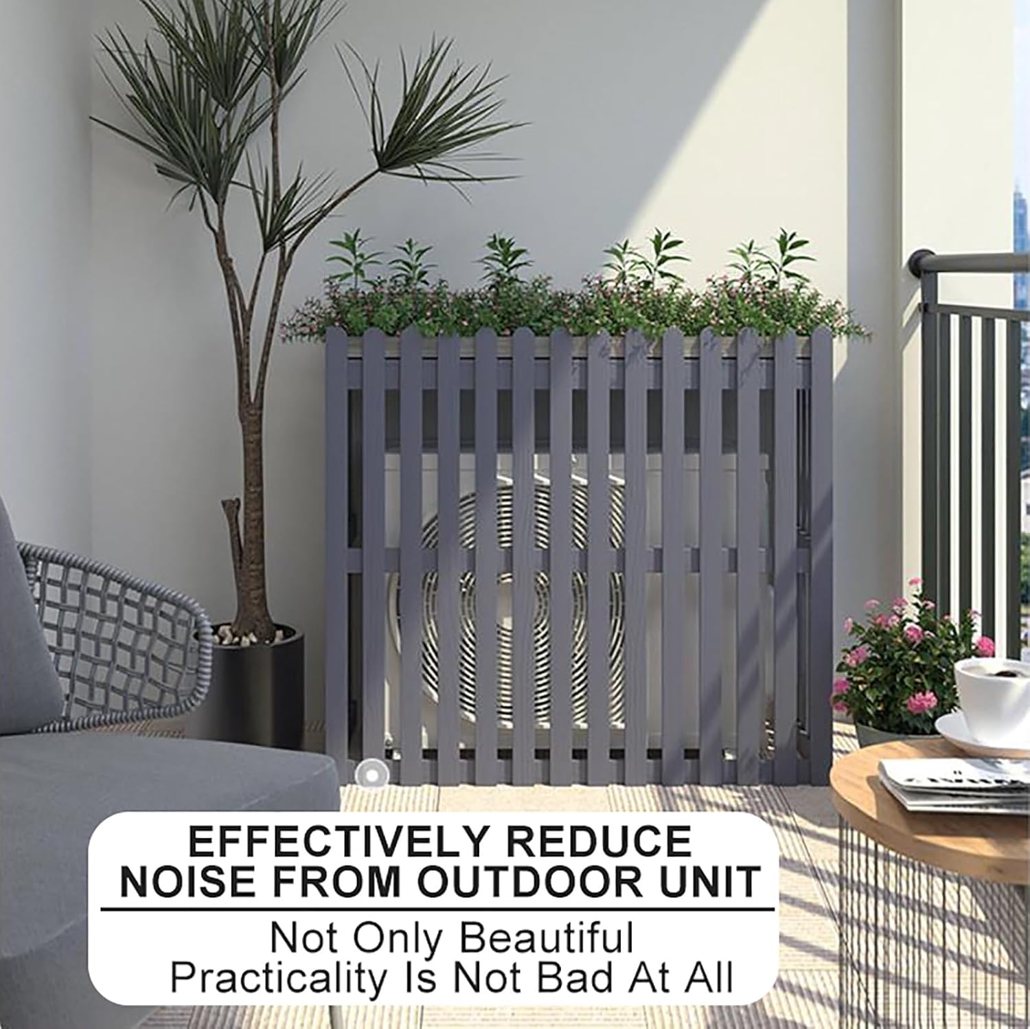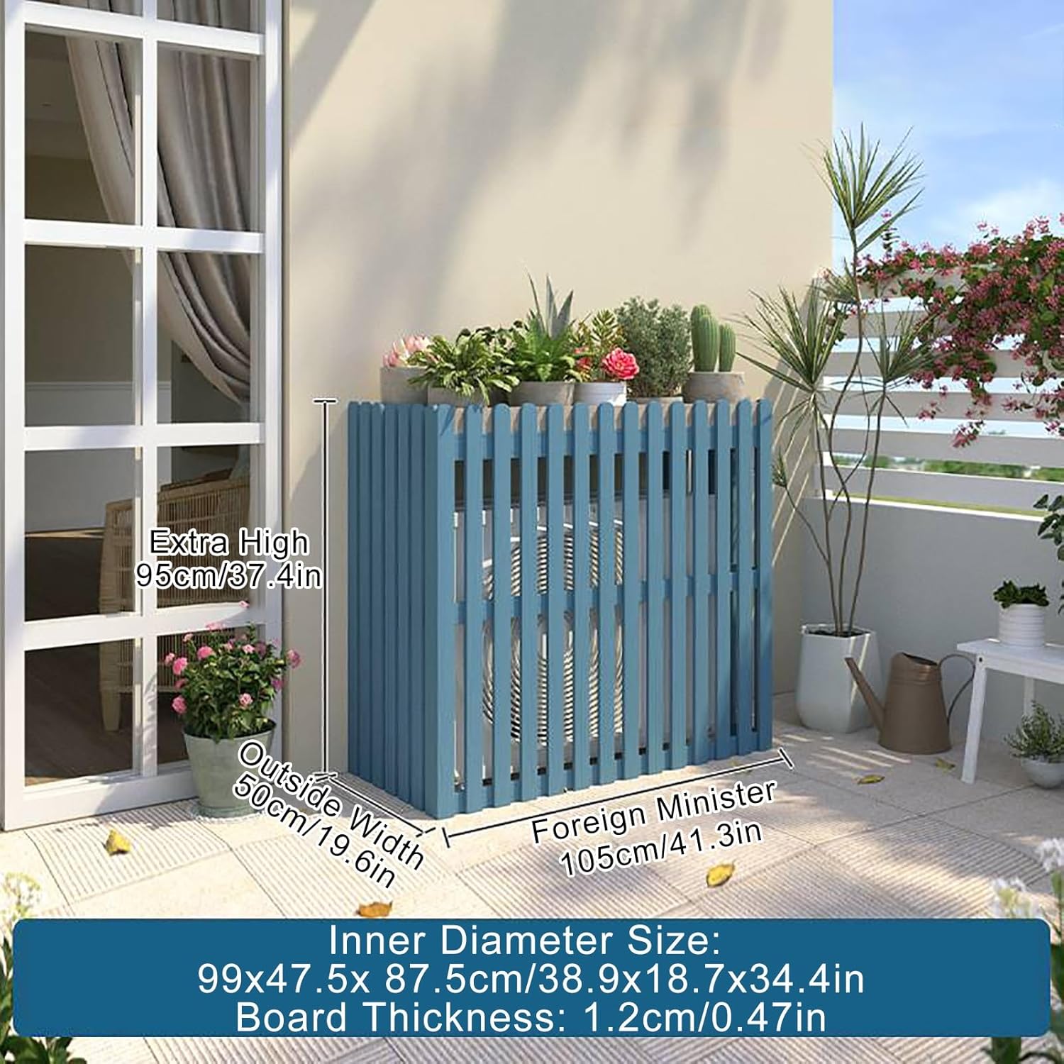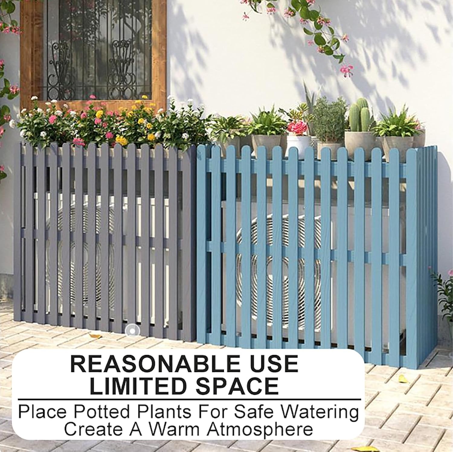 Privacy Fence Air Conditioning Cover for Outside Unit Solid Wood Air Conditioner Flower Rack Balcony Shelf DecorationWith its sturdy construction, it serves as both a flower rack and balcony shelf. But this cover is more than just a privacy solution—it's a multi-functional addition to your outdoor area. With its sturdy construction, it serves as both a flower rack and balcony shelf. Designed with durability and functionality in mind, this rack features a sturdy outer material and an AC hood to provide reliable protection and improve the efficiency of your AC unit.With its solid wood construction, this Air Conditioning Cover for Outside Unit is built to last, providing durable protection for your AC unit and serving as an attractive addition to your outdoor space. Features: Sun Protection Extends the Life of the Outdoor Unit Prevent Sand and Dust from Clogging the Cooling Fins Noise Reduction! Beautiful and Environmentally Friendly! Specifications: Material: Wood Color:Blue , Brown , White , GrayProcess: High Temperature Baking Package Includes: 1 * Air Conditioner Flower Stand Note: Due to the Different Monitor and Light Effect, the Actual Color of the Item Might Be Slightly Different from the Color Which is Showed on the Pictures. Please Forgive 1 Cm/0.39"-3 Cm/1.18" Measudeviation Due to Manual Measurement.
