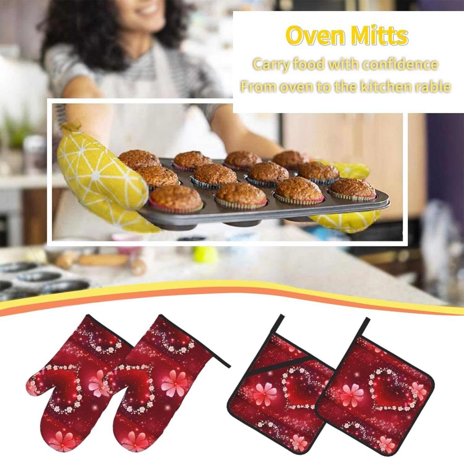 Elevate Your Kitchen Routine With This 4-Piece Baking Set: 2 Oven Mitts And 2 Pot Holders (One Pot Holder Features A Handy Pocket For Small Tools). Made From Premium Polyester Paired With Heat-Resistant Layers, It'S Thick, Durable, And Waterproof Both Inner And Outer Layers Repel Liquids, So Cleaning Is Quick And Easy.Each Piece Has A Side Hanging Loop, Letting You Store Them Neatly To Save Counter Space. The Set Offers Reliable Burn Protection, Ideal For Lifting Lids, Carrying Oven/Microwave Dishes, Or Tending To Outdoor Grills.More Than A Kitchen Essential, This Set Is A Thoughtful Housewarming Gift For New Homeowners Or Cooking Enthusiasts. Whether You'Re Baking Pastries, Cooking Meals, Or Grilling Outdoors, It Keeps You Safe, Organized, And Ready For Any Kitchen Task.