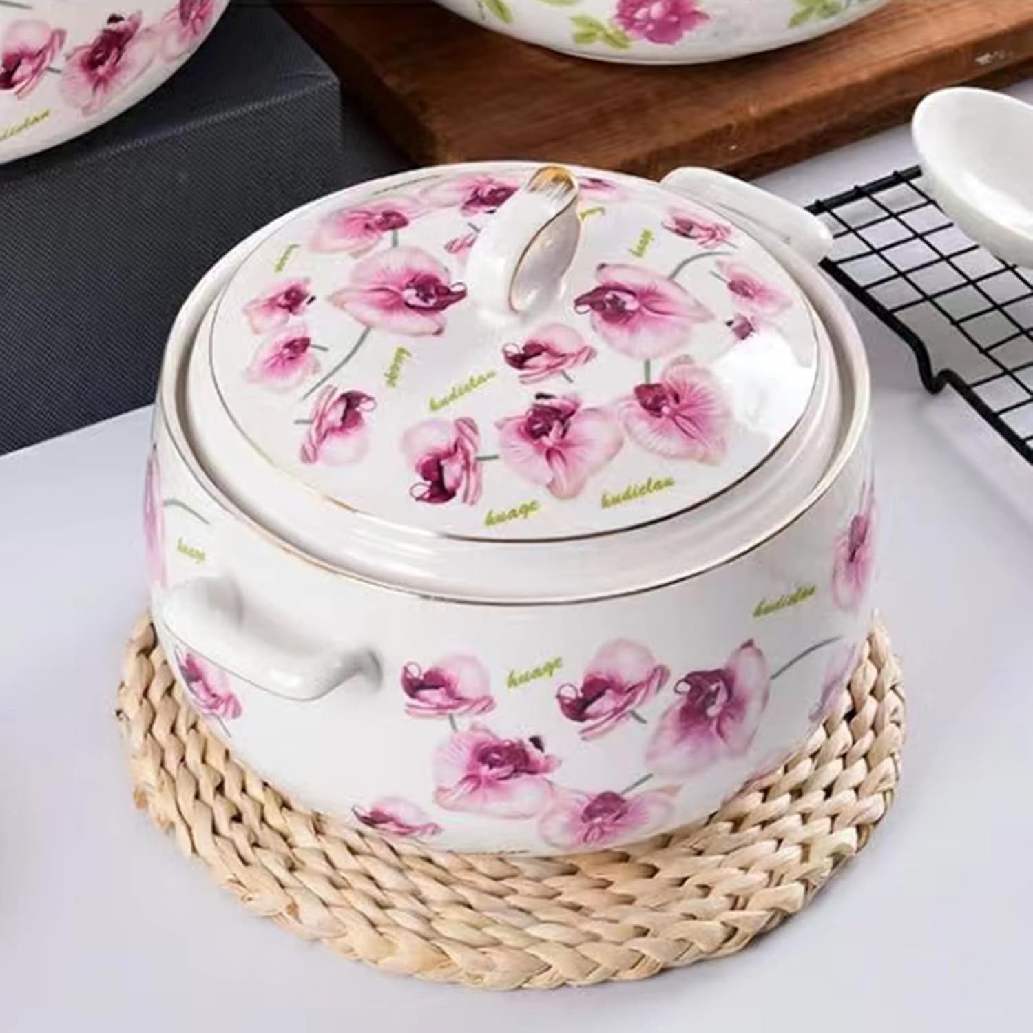 Fall in love with dishes, feel the art and beauty.Fall in love with cooking and cooking, enjoy life and delicacy.Starting with a meal, from the kitchen to the dining room.Soup bowl is more than just a bowl, it is also a work of art that enhances the dining experience and makes your dishes different.Specification:Color: WhiteShape: RoundStyle: ClassicMaterial: CeramicProcess: Under Glazed, EmbossingPattern: FlowersSeasons: All SeasonsIs Dishwasher Safe: YesIs Microwave Safe: YesCapacity: 2000ml/3000mlPackage Includes:1 x White Soup TureenNotes:Please note that this product cannot be heated with open flames.