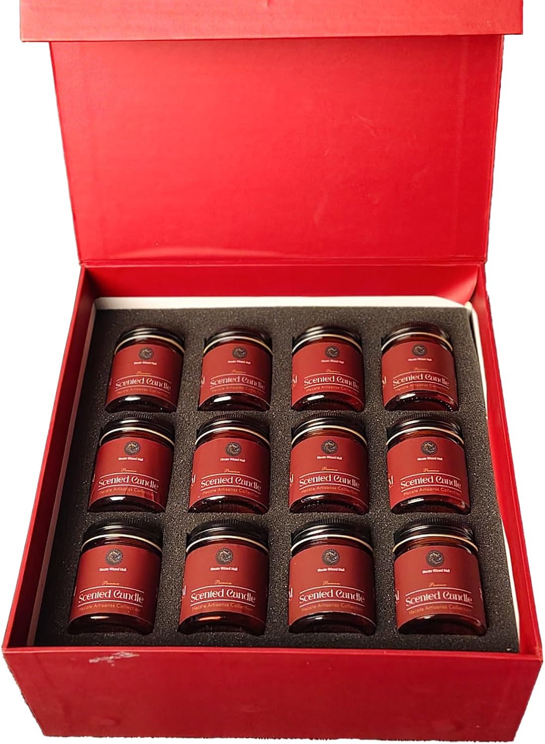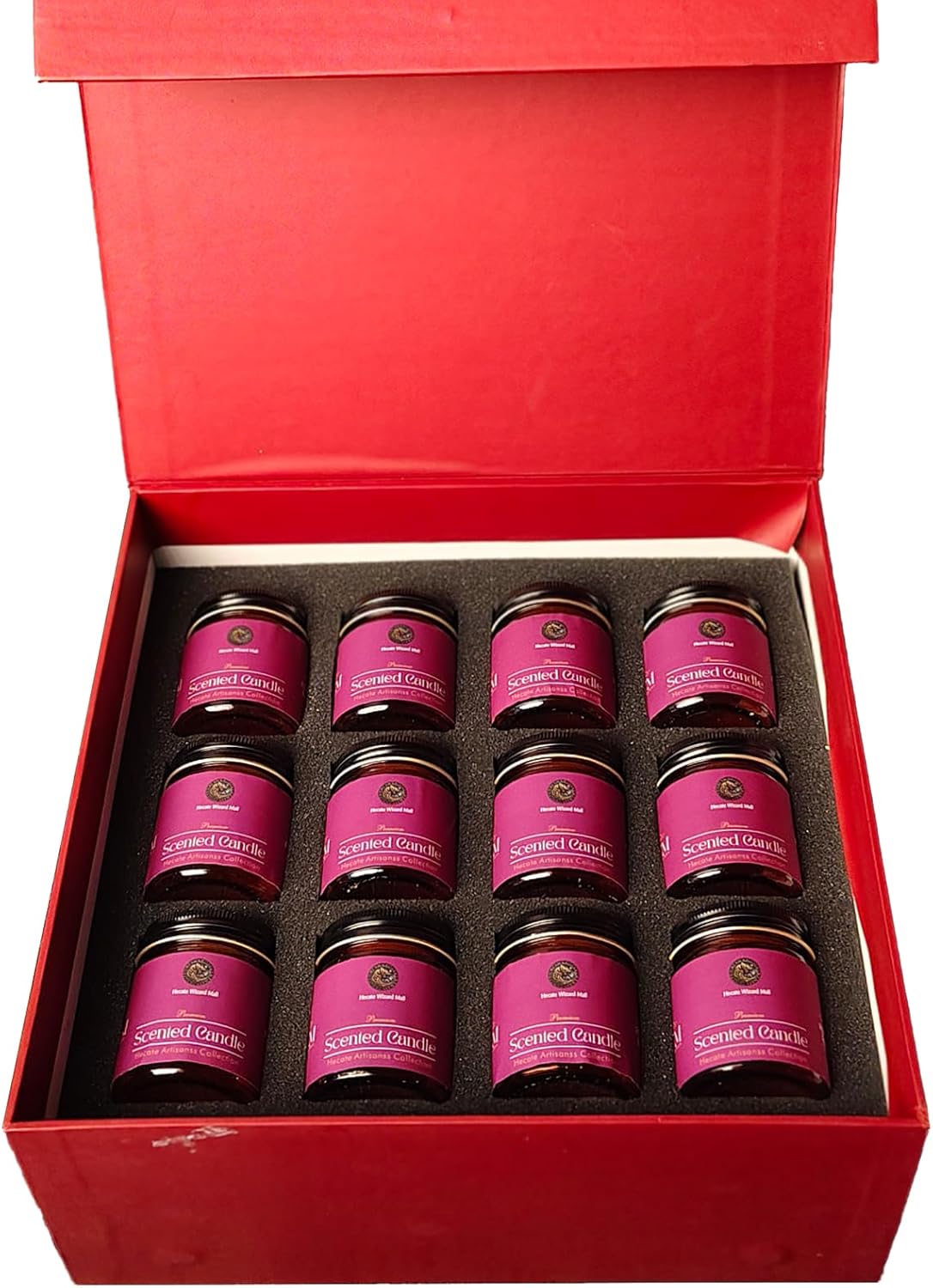 Indulge in the ultimate candle experience with the Hecate Magic Mall Premium Scented Soy Wax Jar Candle Set – a collection of 12 luxurious candles, each thoughtfully crafted to elevate your space and spirit. Blended with refined, fine fragrances, these candles are designed for discerning aroma lovers who seek long-lasting performance and aesthetic appeal. Housed in elegant mini jars, they offer a smokeless, even burn thanks to 100% natural soy wax and premium cotton wicks. This multi-fragrance candle set features a variety of carefully selected scents that help with stress relief, mood enhancement, and creating a welcoming atmosphere in any setting — be it your bedroom, living room, office, spa, or sacred altar. 💡 Best Use Instructions: For rooms up to 150 sq ft, use 1 candle. For larger rooms or more intense scent, light 2 candles in opposite corners. Trim wick to ¼ inch before each use for a clean burn. Allow the candle to burn to the edge of the container during the first use to prevent tunneling. Whether you're curating the perfect self-care ritual, enhancing meditation, or gifting someone special, this set offers the perfect balance of aroma, luxury, and intention.