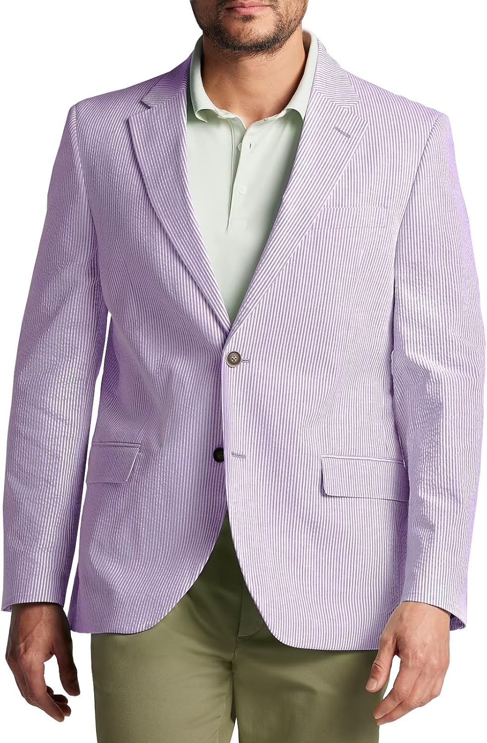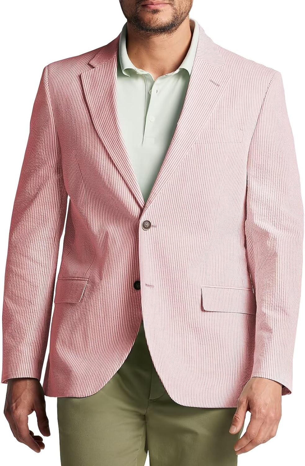 Seersucker Blazer for Men Lightweight Summer Wedding Casual Outfits Pinstriped with White Accents 2 Button
