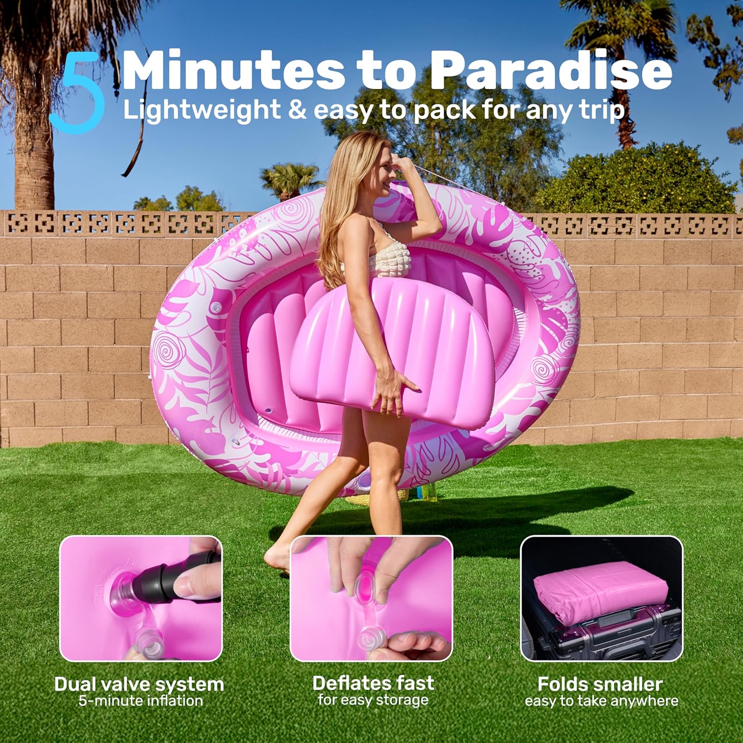 Streamlined Elegance for Solo Relaxation.The 70”L x 50”W oval Sloosh tanning pool offers a uniquely ergonomic shape. This inflatable tanning pool is perfect for a personal retreat, functioning as both a sleek sun tanning pool and a stable pool float in your swimming pool or as one of the finest tanning pools for backyard.Contoured Comfort with Ample Space.Experience targeted support in this tanning pool lounger. The oval form contours to your body’s silhouette, delivering the supportive feel of a premium tanning chair. It’s a comfortable pool lounger float and a top-tier choice among pool floats adult for focused relaxation.Directional Stability for Effortless Lounging.Enjoy predictable relaxation with this tanning float. The oval shape offers inherent stability in water, making this pool tanning float easy to position. It's a versatile inflatable pool float perfect for creating your own sunbathing pool oasis.Durable Craftsmanship in a Sleek Form.Built to last, this inflatable tanning bed is crafted from heavy-duty PVC. It’s a resilient blow up pool that stands out for both style and substance among inflatable pool floats. Sloosh ensures this tanning inflatable pool is a durable investment.Efficient and Stylish Portability.The streamlined Sloosh inflatable tanning pool packs down compactly. This large pool float is exceptionally easy to transport, making it a go-to pool float for trips. It’s a prime example of a portable inflatable tanning pool for adults.