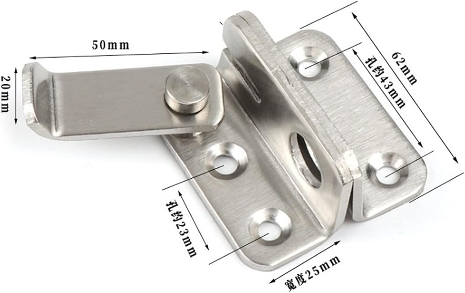 Gate LocksMaterial: stainless steelColor:Silver Size:62*25mm