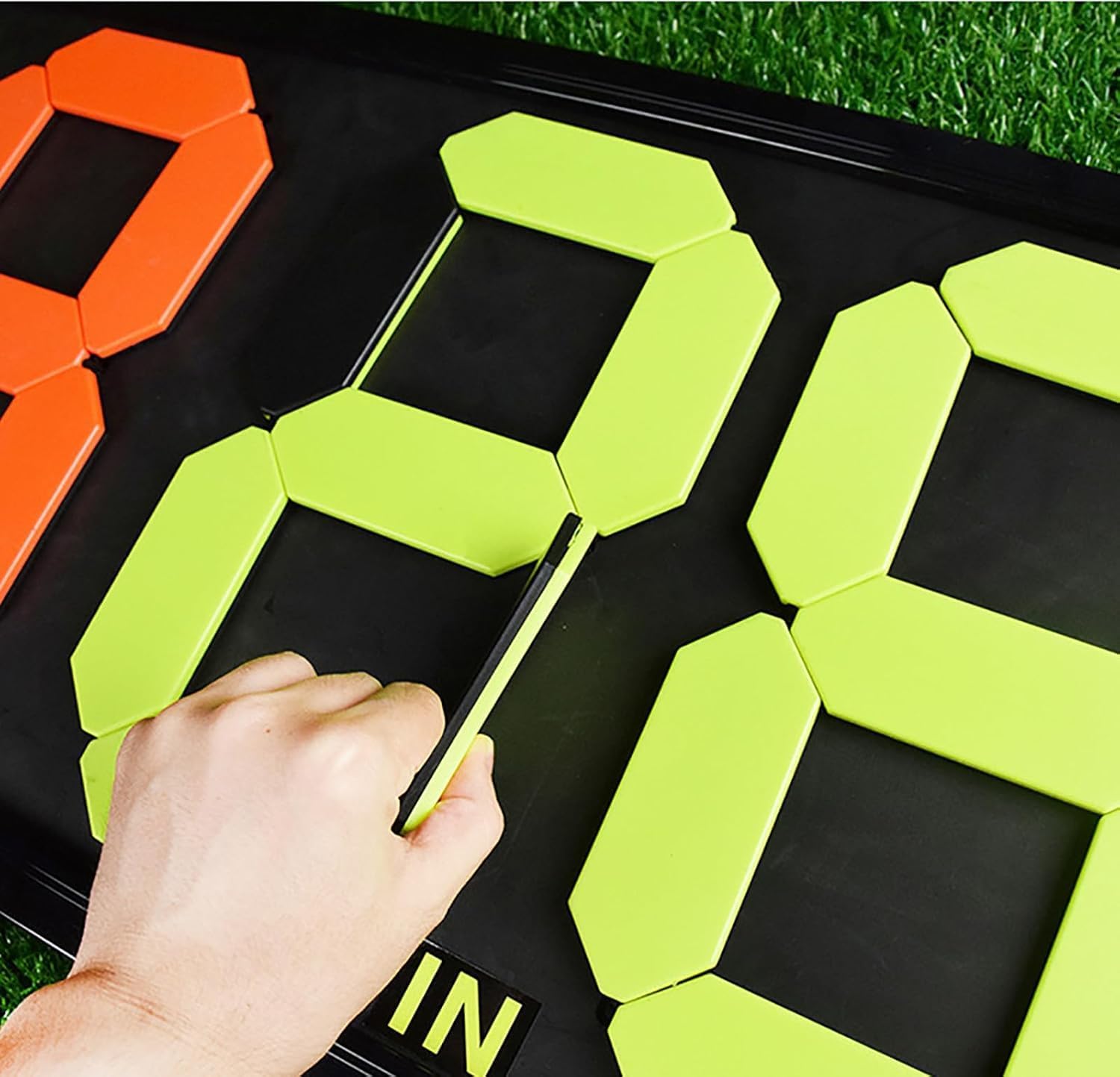 Each small fluorescent PP block is fixed in series with a highly elasticated elastic band. Simply flip any PP block and turn it black to change the number. If 8 becomes 0, just flip the centre, and if 8 becomes 2, just flip the top left and bottom right corners.Product SpecificationProduct Name Football Referee Replacement BoardMaterial: PVC/plastic Product colour: red, yellowSize: small size 30.5cm x 64cm / large size 38.5cm x 44cmScope of application: football matchesProduct list: four replacement cards *1If you have any questions, please feel free to contact our customer service at any time.