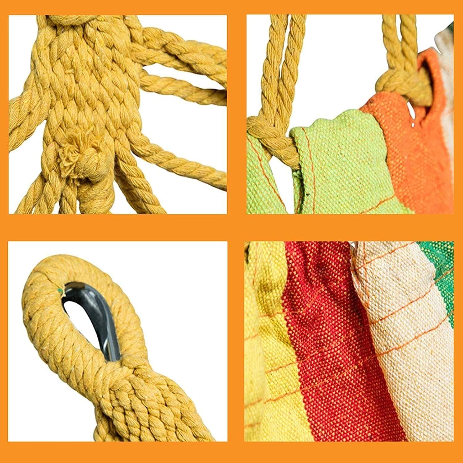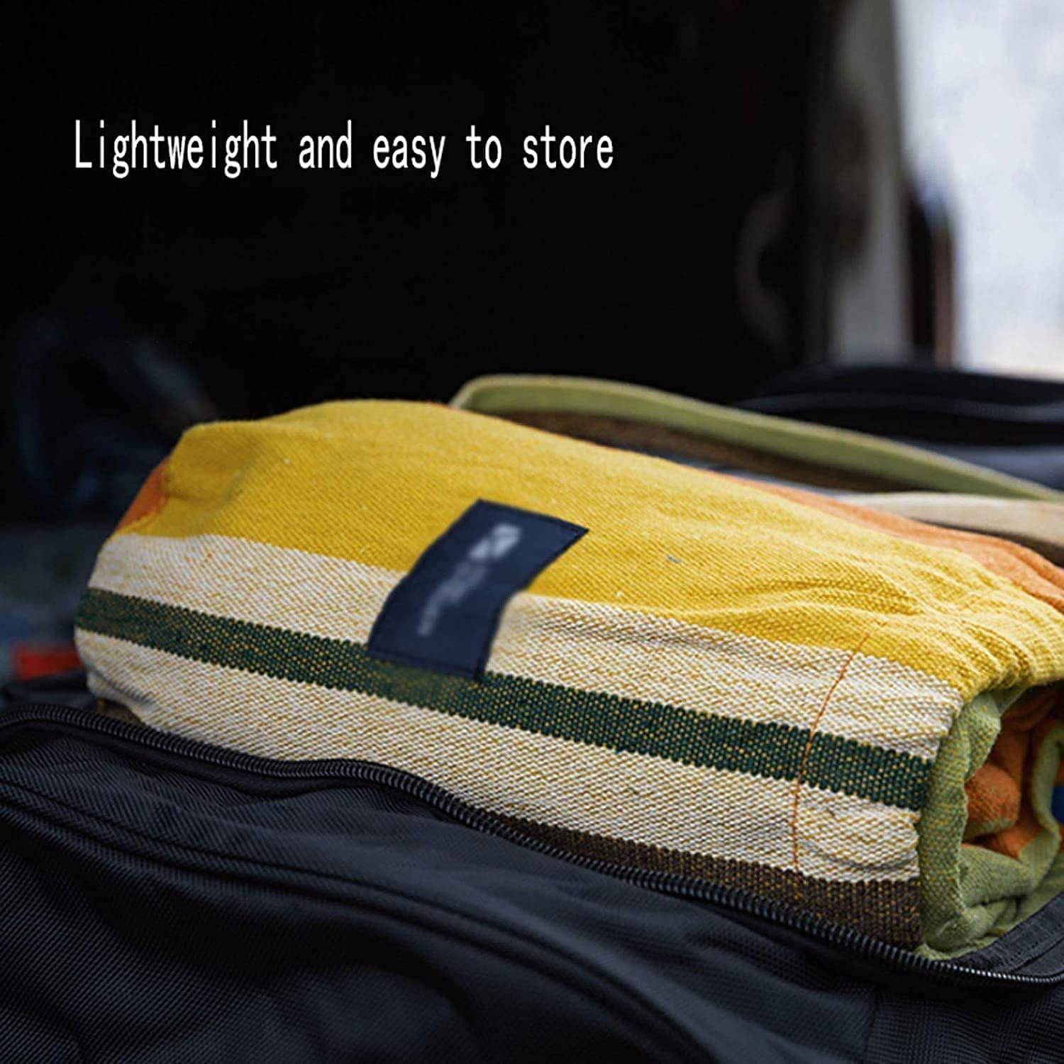 Portable: The hammock comes with a free carry bag for easy travel.Fast to Set Up: It takes about two minutes to set up the cotton hammock. You can attach the hammock to a hammock stand or hang it to the trees. You will enjoy the freedom the stand provides by allowing you to set up your hammock fast in the most convenient location.