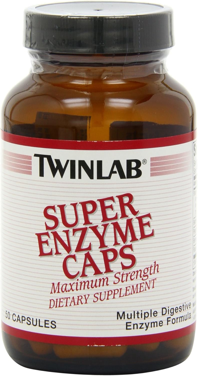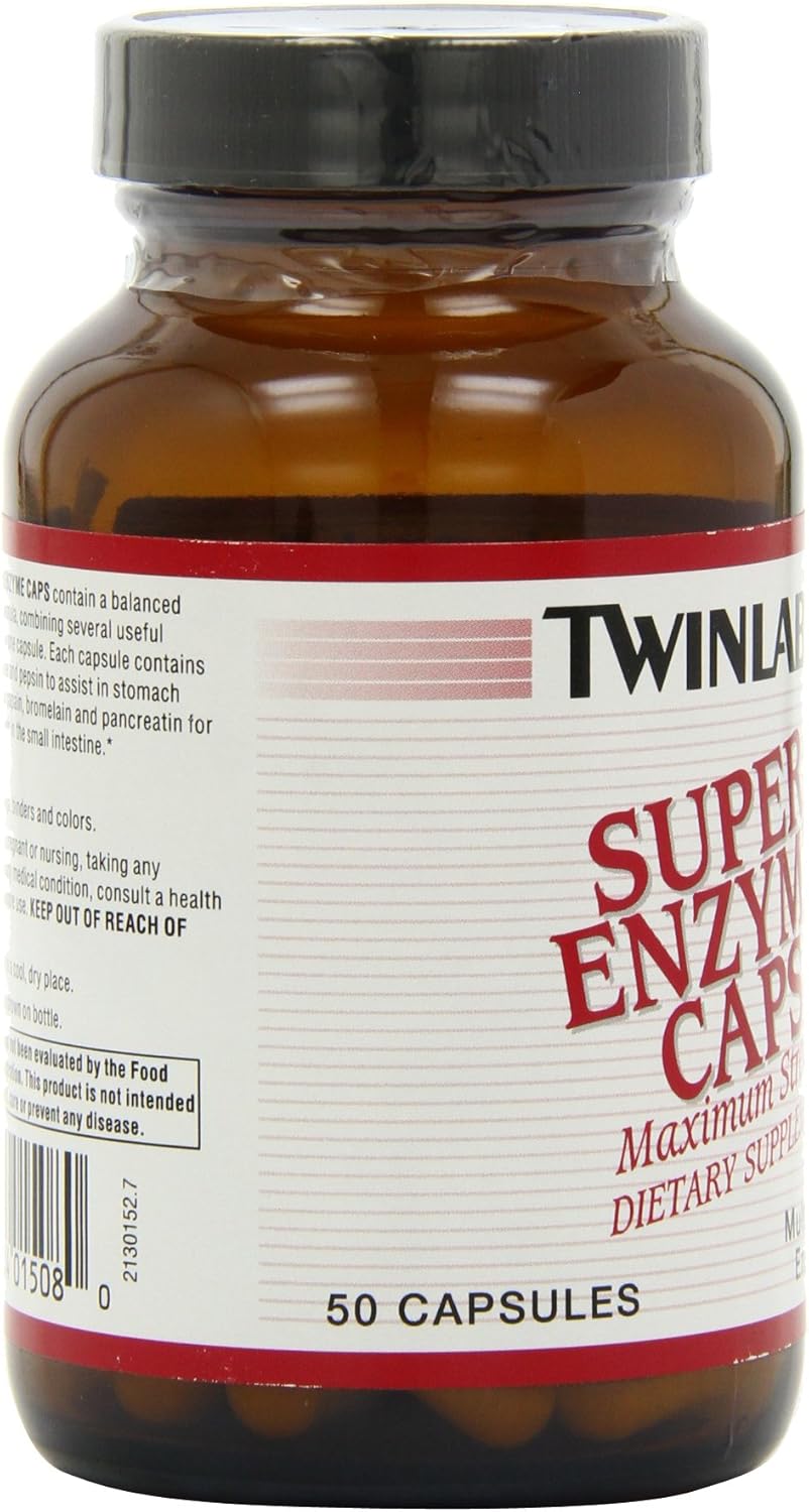 Twinlab Super Enzyme Caps is a complete and balanced digestive enzyme formula offering the greatest possible digestive activity available, combining all the useful digestive enzymes in one capsule. Each capsule contains the highest potencies of betaine hydrochloride and pepsin to assist in stomach digestion along with papain, bromelain and pancreatin for the most efficient help in the small intestine. Super Enzyme is a broad spectrum digestive aid for digestion and assimilation of proteins, carbohydrates, and fats.