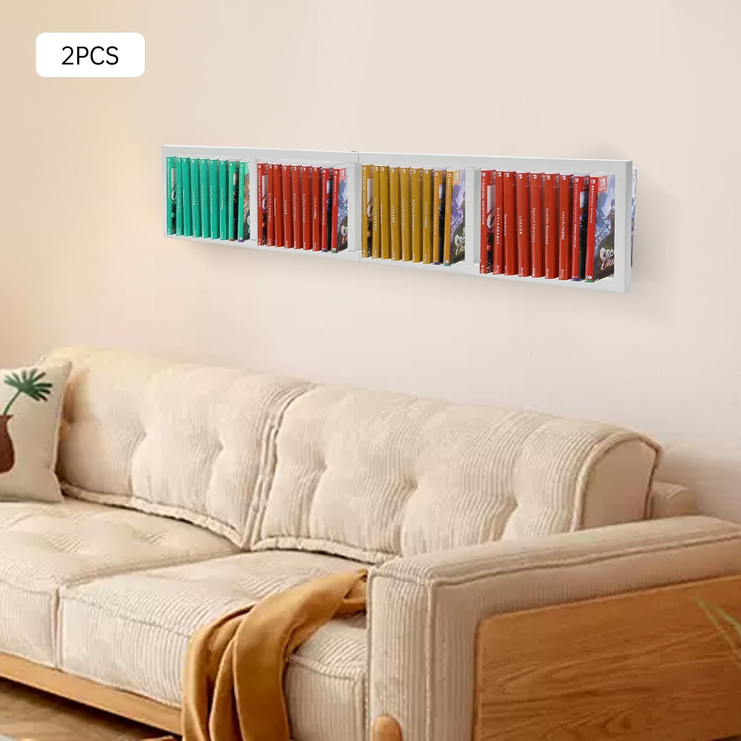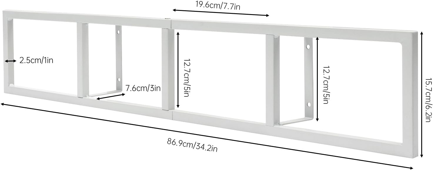 SpecificationMaterial: IronColor: WhiteInstallation Way: PunchingProcessing Technology: WeldingMounting Type: Wall MountShelf Type: Floating ShelfShape: RectangularStyle: Rustic, ModernAssembly Required: YesNumber of Pieces: 2Net Weight: 1.8kg/3.97lbsGross Weight: 2.1kg/4.63lbsLoad-bearing: 10kg/22.04lbsPackage Size: 45*19*6cm/17.72*7.48*2.36inchProduct Size: 86.9*15.7*7.6cm/34.2*6.2*3 inchEach Compartment Size(L*W):19.6*12.7cm/7.7*5inchPackage Included2* CD RacksAll Accessories for InstallationDetailsRounded Design: Compared with traditional square corner, the rounded corner design has been polished smoothly, while avoiding collision and improving the safety of use.Mounting Hole: Equipped with mounting hole, the rack can be fitted firmly without fear of falling.
